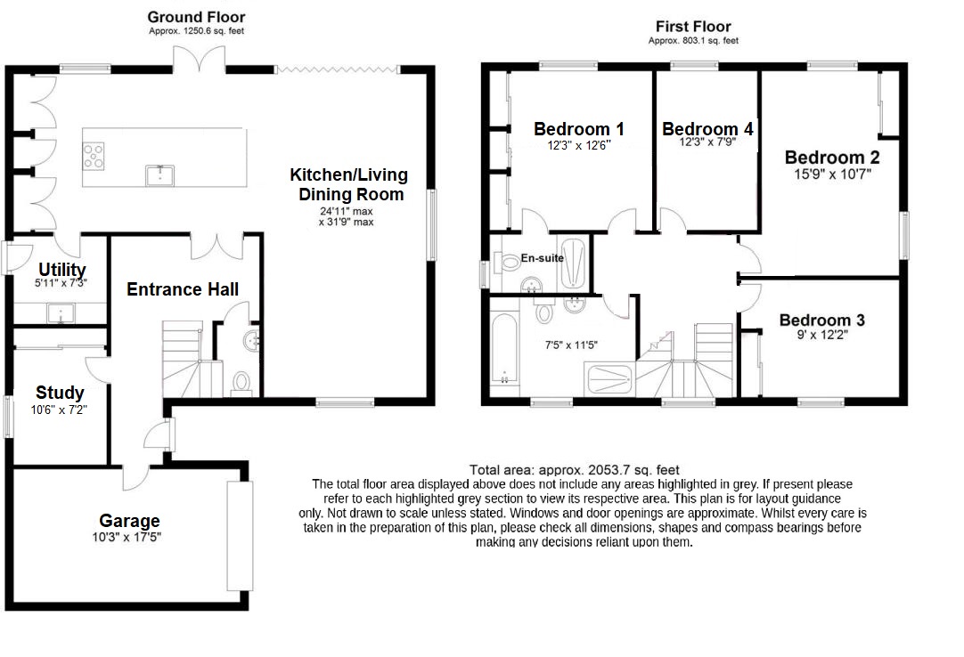 The ground floor is centred around a superb open plan kitchen, dining and living space creating the heart of the home. Features include sleek high gloss cabinetry, an island with breakfast bar and full width bi-fold doors that open onto the garden. Off the kitchen area there is a useful utility room. With the added bonus of a study and cloakroom the accommodation is perfect for modern living. Also, from the entrance hall, is a door giving internal access to the garage.