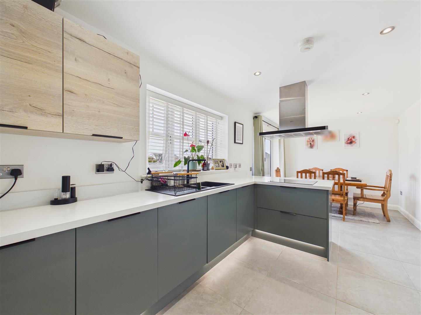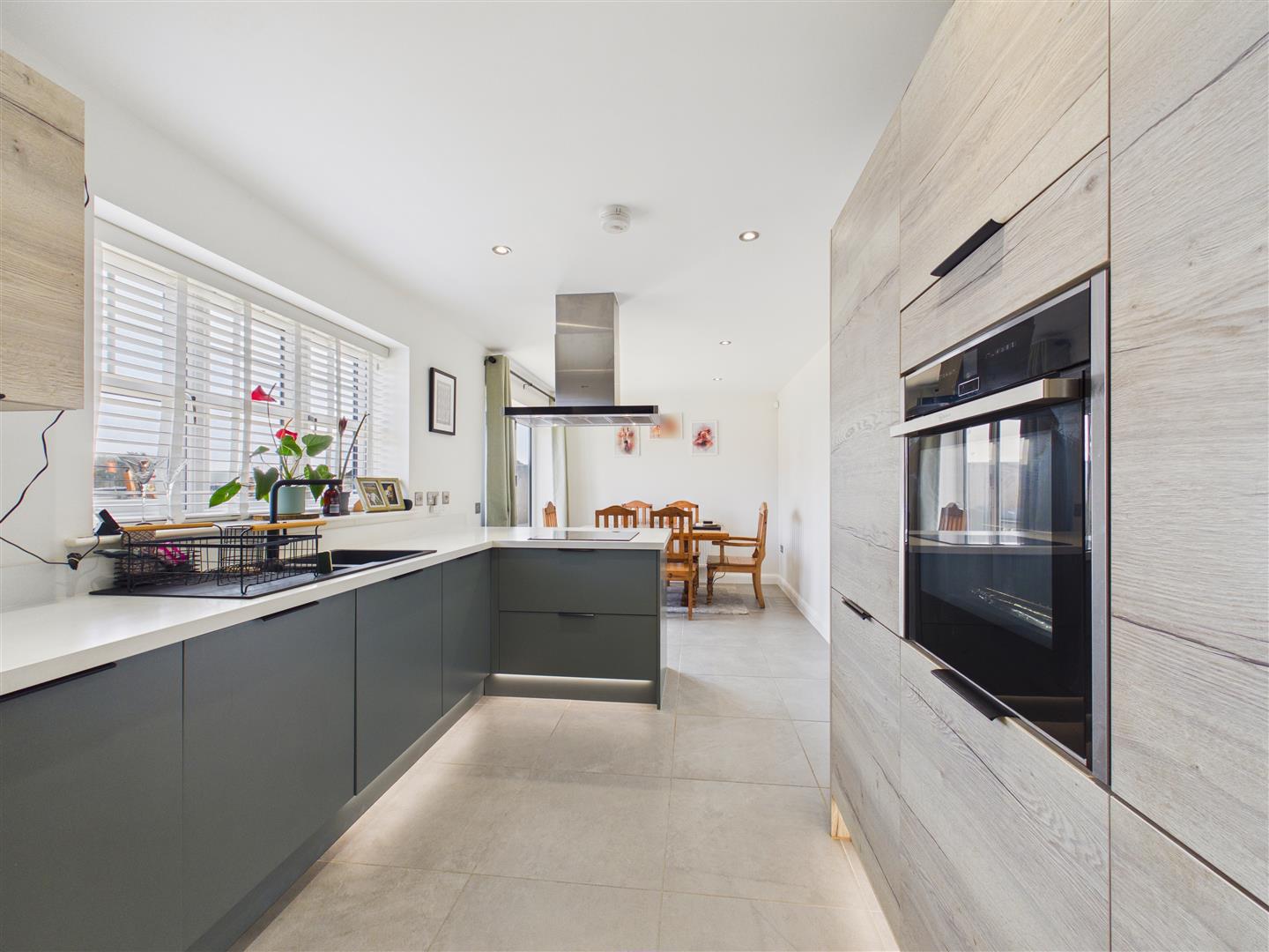 Dining Kitchen - Having a range of dual tone units with upgraded heat resistant worktops incorporating a one and a half bowl sink and drainer with mixer tap and breakfast bar. NEFF integrated appliances include an oven with slide and hide door, induction hob with filter hood above, dishwasher and fridge/freezer. From the dining area, bi-folding doors lead out to the rear garden.