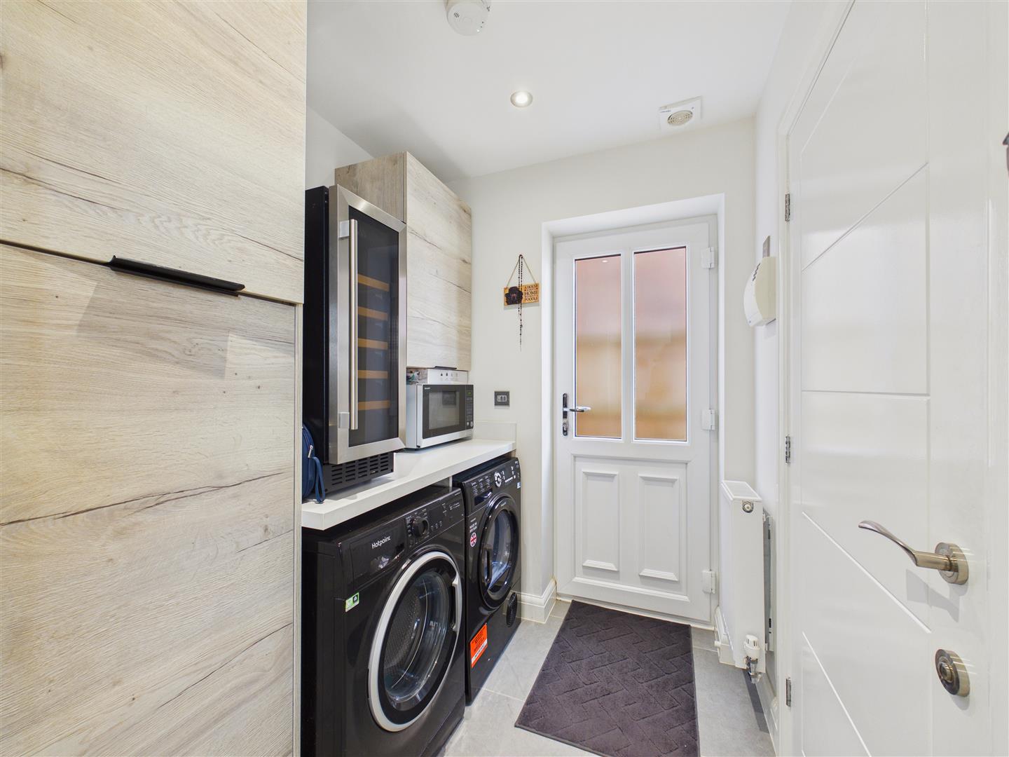 Utility Room - With fitted units, plumbing for a washing machine and space for dryer, cupboard housing the wall mounted gas central heating boiler, tiled floor and external access door to side.