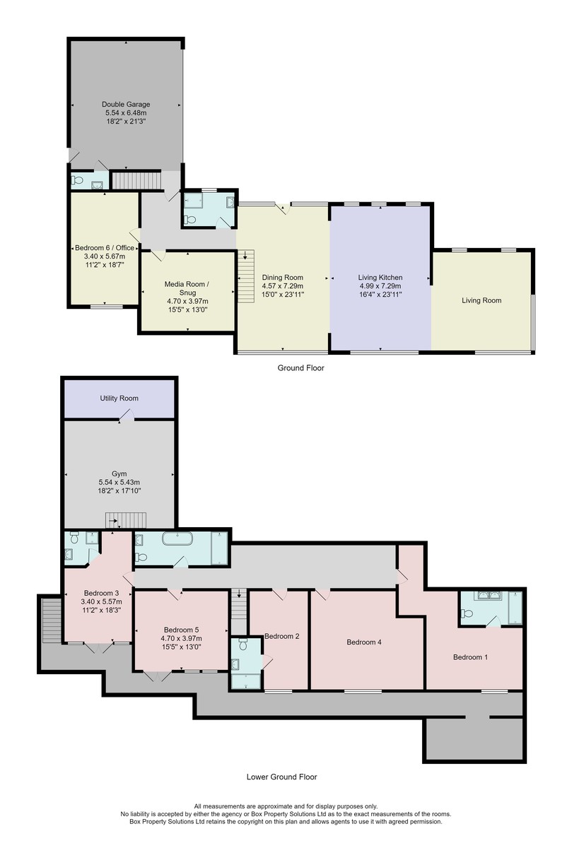 There are two further good-sized rooms which can either be used as further bedrooms, study or a media room, in addition to a fully tiled shower room. A second stairs leads down to a gym with fitted storage cupboards. Utility/ Plant Room,
