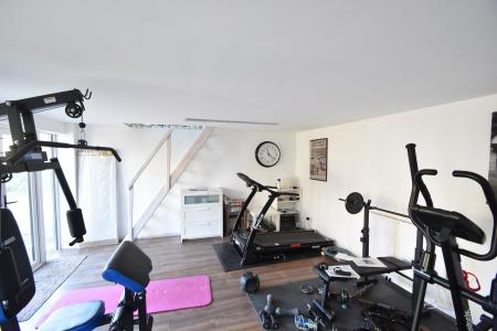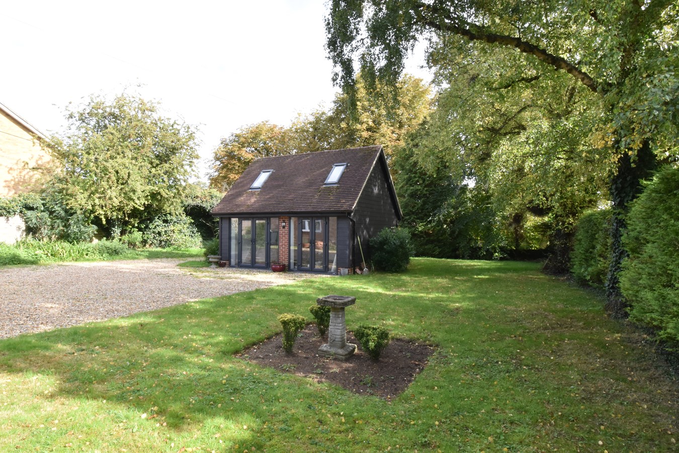 The double garage within the garden has been converted into a studio and used a a gym with a most useful storage area upstairs.
