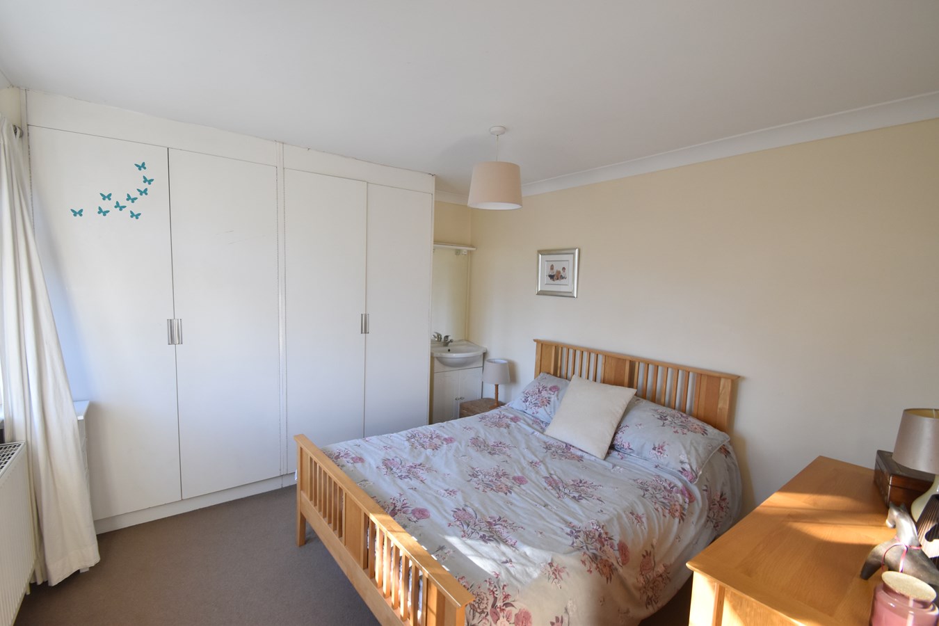 11' 0" x 10' 0" to wardrobe doors (3.35m x 3.05m) Double glazed window to front. Radiator. Two sets of double wardrobe cupboards. Vanity hand basin.
