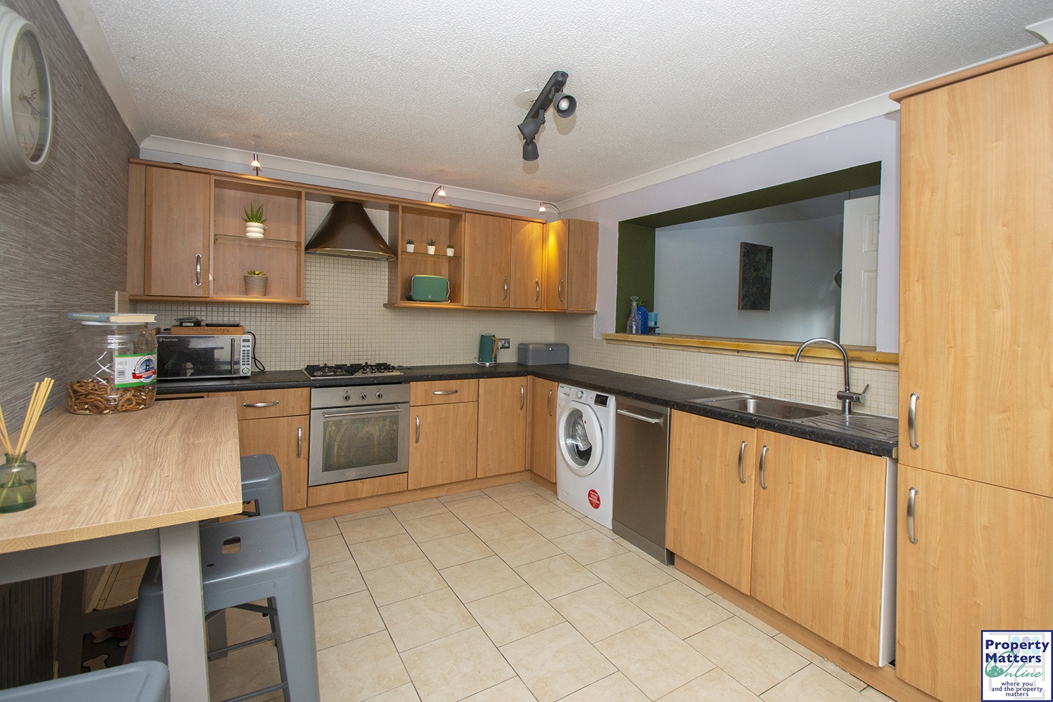 The accommodation is formed over two levels with the lower level comprising welcoming entrance hallway with under stairs storage, well-proportioned front facing lounge with feature fire and surround. Spacious dining kitchen with utility area, the kitchen houses an ample range of base and wall units with complementary worktops and tiled splash-back areas, integrated gas hob, electric oven and extractor hood. Three-piece shower room comprising wc, wash hand basin with vanity unit and corner shower. Rear facing dining room/bedroom four. The upper-level accommodation houses the rear facing main bedroom with triple fitted wardrobes, and a further two bedrooms to the front. Three-piece family bathroom comprising wc, wash hand basin and bath with overhead electric shower.