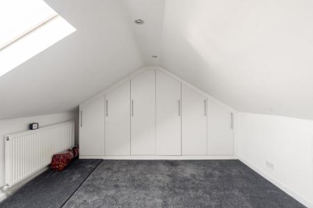 Upstairs, the master bedroom is a true retreat, featuring an en-suite bathroom and ample fitted wardrobes. Two further double bedrooms also benefit from fitted wardrobes, while a well-proportioned single bedroom, overlooking the front of the property and a family bathroom, completes this floor. The loft room offers additional storage or the perfect space for a home office.