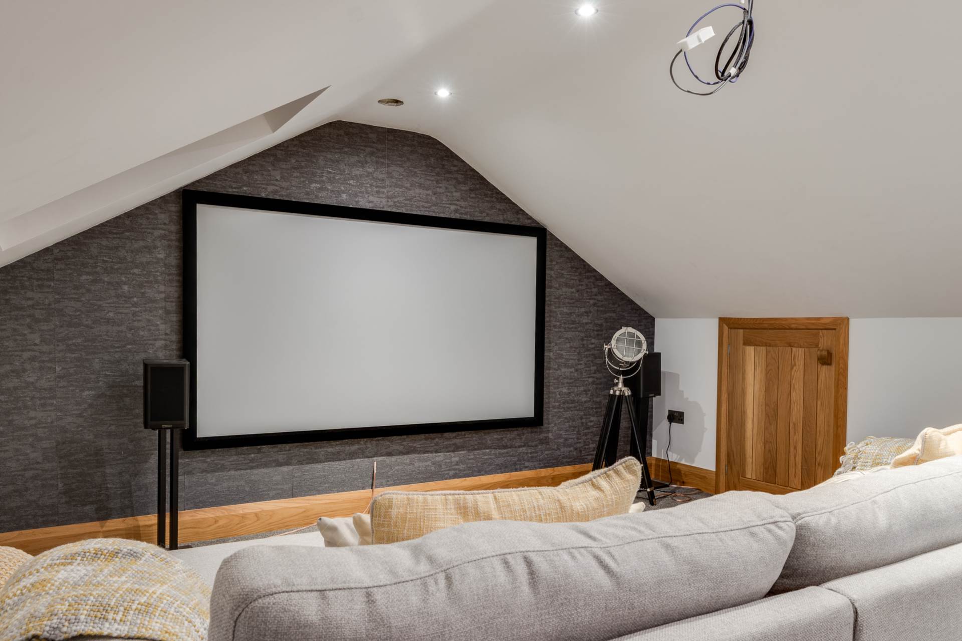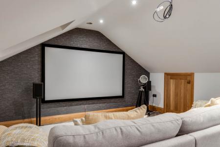 Currently used as a cinema room. Surround sound system. Velux window. Eves storage.