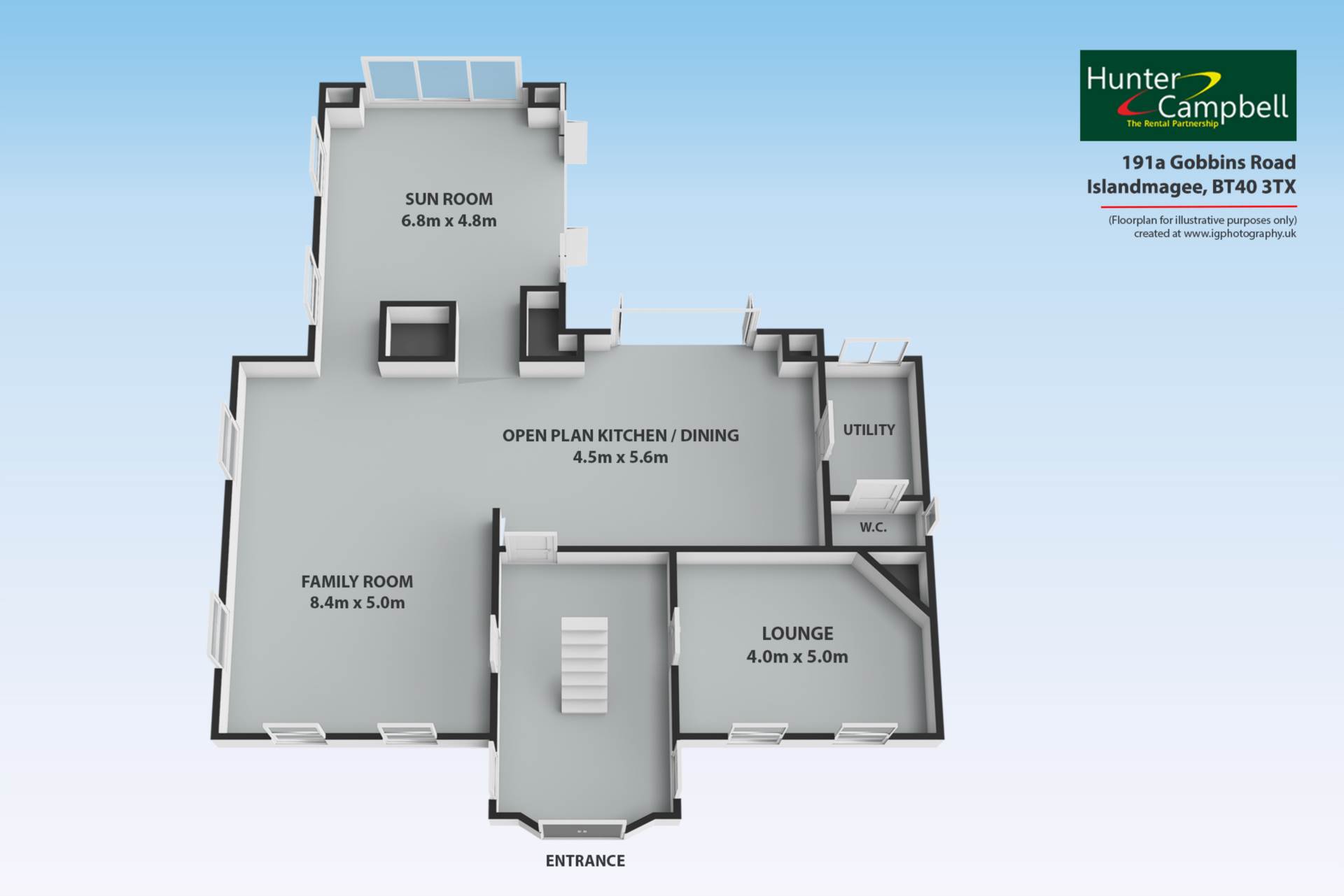 SUNROOM: - 4.78m (15'8") x 5.03m (16'6")