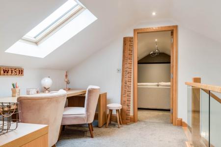 Laminate flooring. Velux window. Eves storage.
