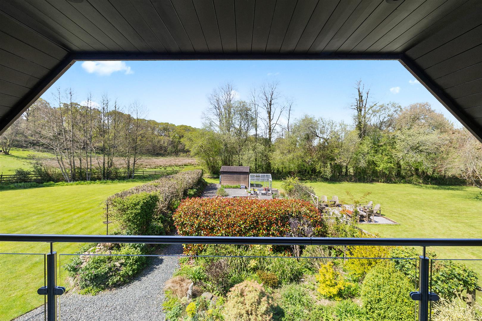 From the garden room a second staircase rises to the master bedroom suite, engineered timber floor, fitted wardrobes and French doors open onto a covered balcony with lovely views over the garden and surrounding farmland. A well equipped en suite, tiled flooring double ended bath, large shower, W/C and vanity unit with wash handbasin. Subject to obtaining the necessary consent a 1 bedroom annexe could be formed by incorporating the garage (underfloor heating in situ) to form a kitchen, using the existing garden room and master bedroom with en suite above.