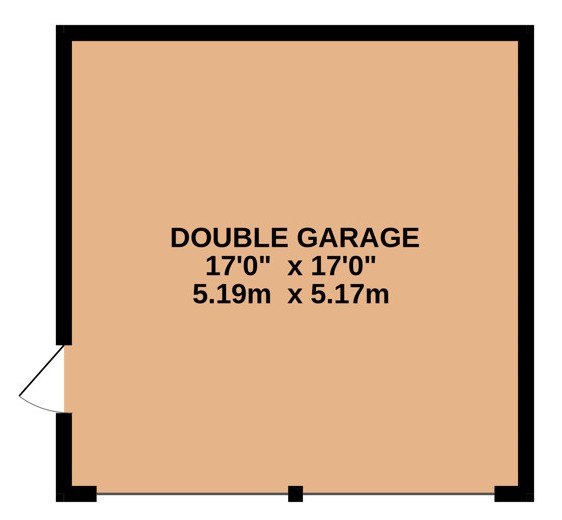 Double Garage 17' x 17' (5.18m x 5.18m).