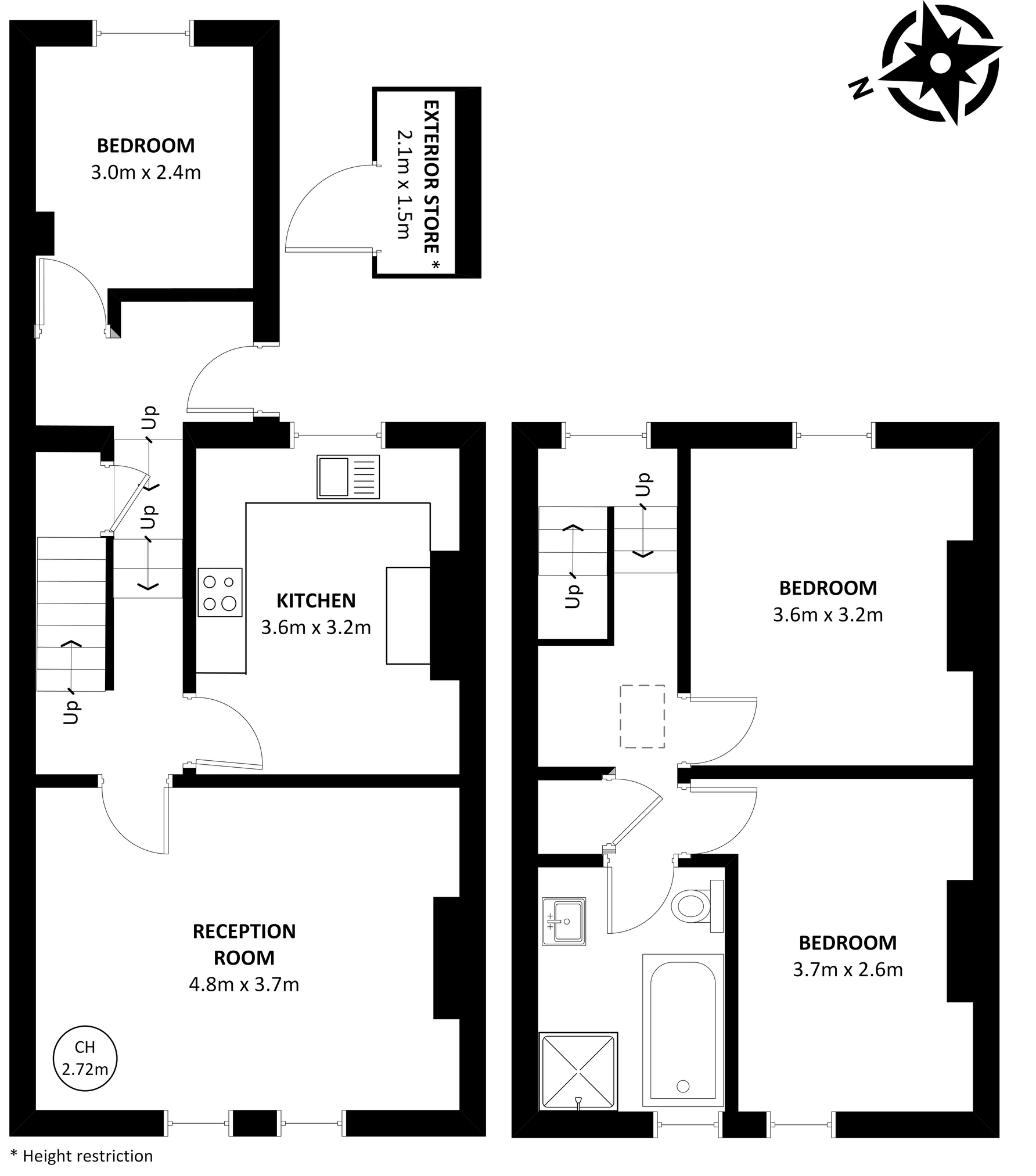 Accessed from Church Road. Situated above a locally renowned - restaurant with metal stairs providing access to the front door.