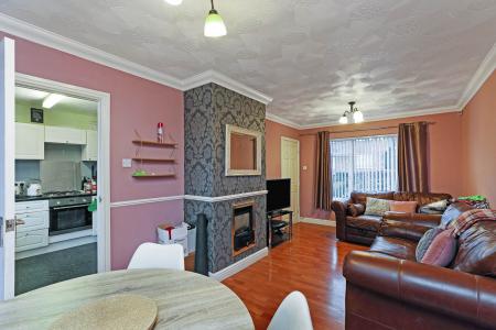 You are welcomed into the property via an inviting entrance porch, which opens into a bright and spacious open plan living and dining area. This impressive space is flooded with natural light from windows positioned to both the front and rear elevations, creating a warm and airy atmosphere throughout. A feature fireplace provides a charming focal point, making this room ideal for both everyday living and entertaining. From the living/dining area, the accommodation flows seamlessly into the generously sized kitchen. The kitchen is well equipped with a range of wall and base units offering ample storage, along with an integrated oven, gas hob, and extractor hood. There is also space and plumbing for a washing machine, dishwasher, and a free-standing fridge/freezer. Additional practicality is provided by a useful understairs storage cupboard, while an external door gives direct access to the side and rear garden.