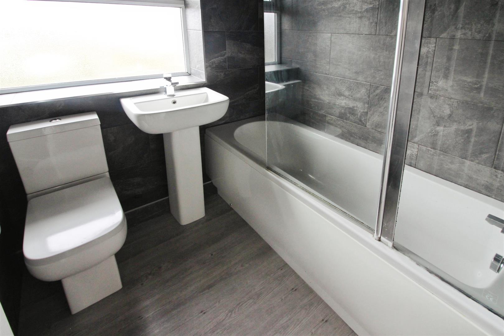 The ground floor features entrance vestibule, lounge with a bay window, providing a pleasant outlook to the front. The open-plan kitchen/diner includes a built-in oven and hob, along with a fridge freezer, creating a functional space for cooking and informal dining. From here, there is access to the rear garden via French doors, offering outdoor space for relaxation or play. Upstairs, there are three bedrooms: a double master bedroom, a further double bedroom, and a single bedroom, providing flexibility for family living, guests, or a home office. The bathroom is fitted with a shower over the bath.