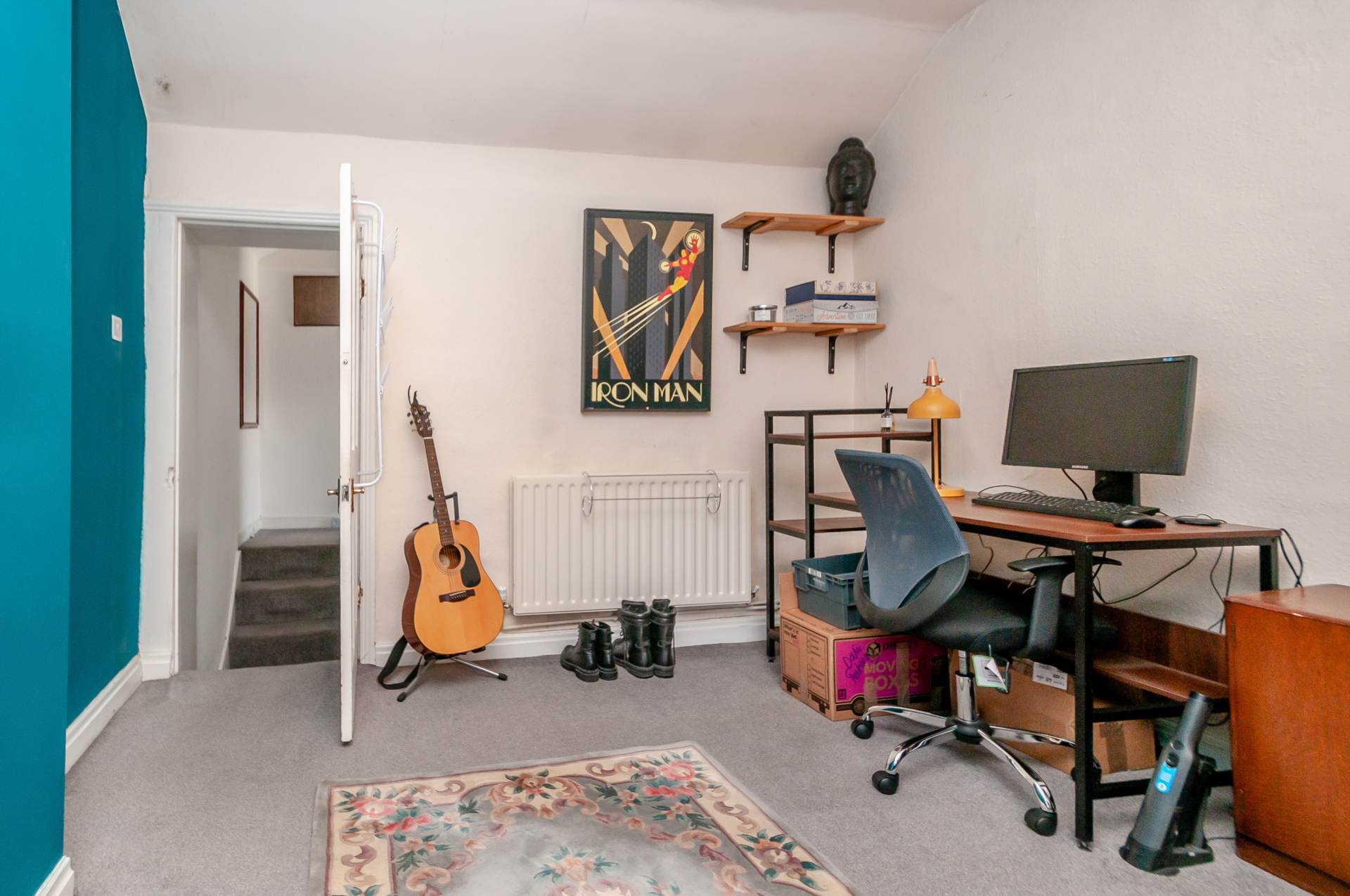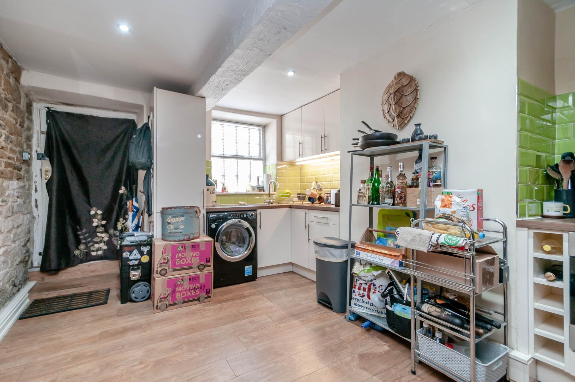 The cosy living room is bright and inviting, flooded with natural light and offering access to a handy storage cupboard, the cellar, and the rear low maintenance garden perfect for relaxing or entertaining.