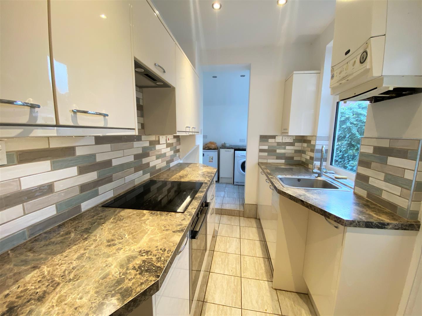 The fitted kitchen, which includes a utility area to the rear, offers ample space for culinary creativity and family gatherings. The layout is functional with a selection of wall and base units, work surface, sink drainer and metro tiling. There is an integrated oven, hob and extractor fan as well as space for appliances and a courtesy side door to the garden.