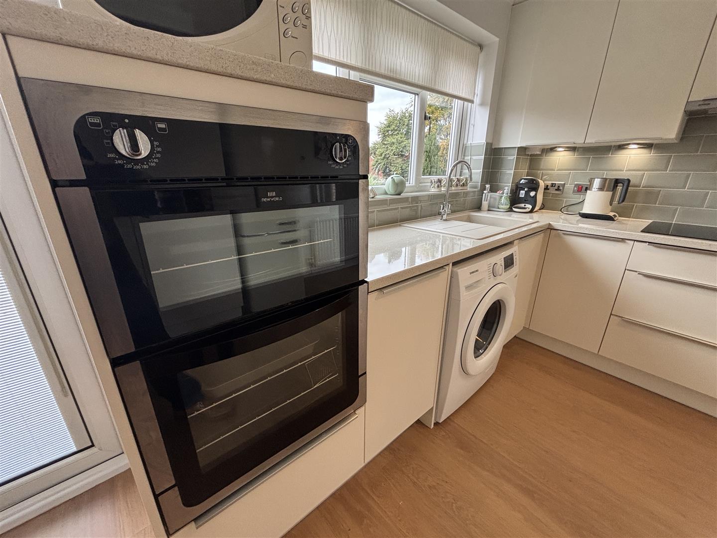 Kitchen-Diner - 5.15 x 2.96 (16'10" x 9'8") - UPVC double glazed window to rear, UPVC double glazed French doors, UPVC double glazed single door to side, laminate flooring two radiators. Fitted with a range of base, drawer & eye level units, work surfaces, tiled splashback, composite sink unit with mixer tap. Built-in fan assisted double oven and grill, induction hob with extractor hood.