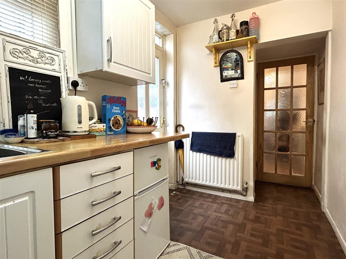 Kitchen - 4.67 x 1.72 (15'3" x 5'7") - (maximum measurements) Fitted with a range of floor and wall mounted units, roll top work surfance and tiled splashbacks. The kitchen also benefits from a gas hob, plumbing for a washing machine, stainless steel sink and drainer unit, pantry cupboard, dual aspect triple glazed windows and uPVC double glazed door leading out onto the rear garden.