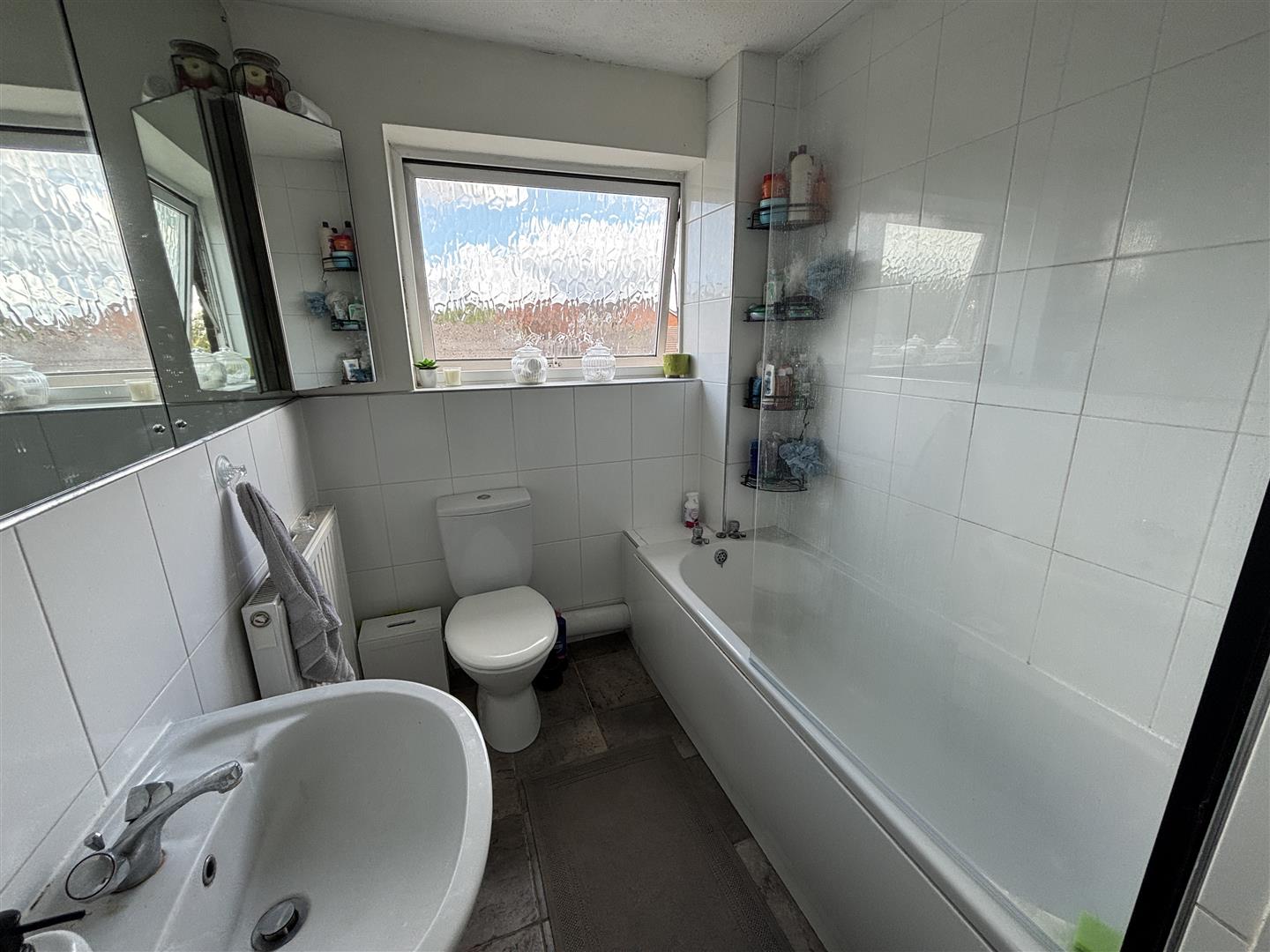 Bathroom - 2.68 x 1.84 (8'9" x 6'0") - UPVC double glazed opaque window, radiator, vinyl flooring, mainly tiled walls, panelled bath with electric shower over, pedestal wash hand basin, wc.