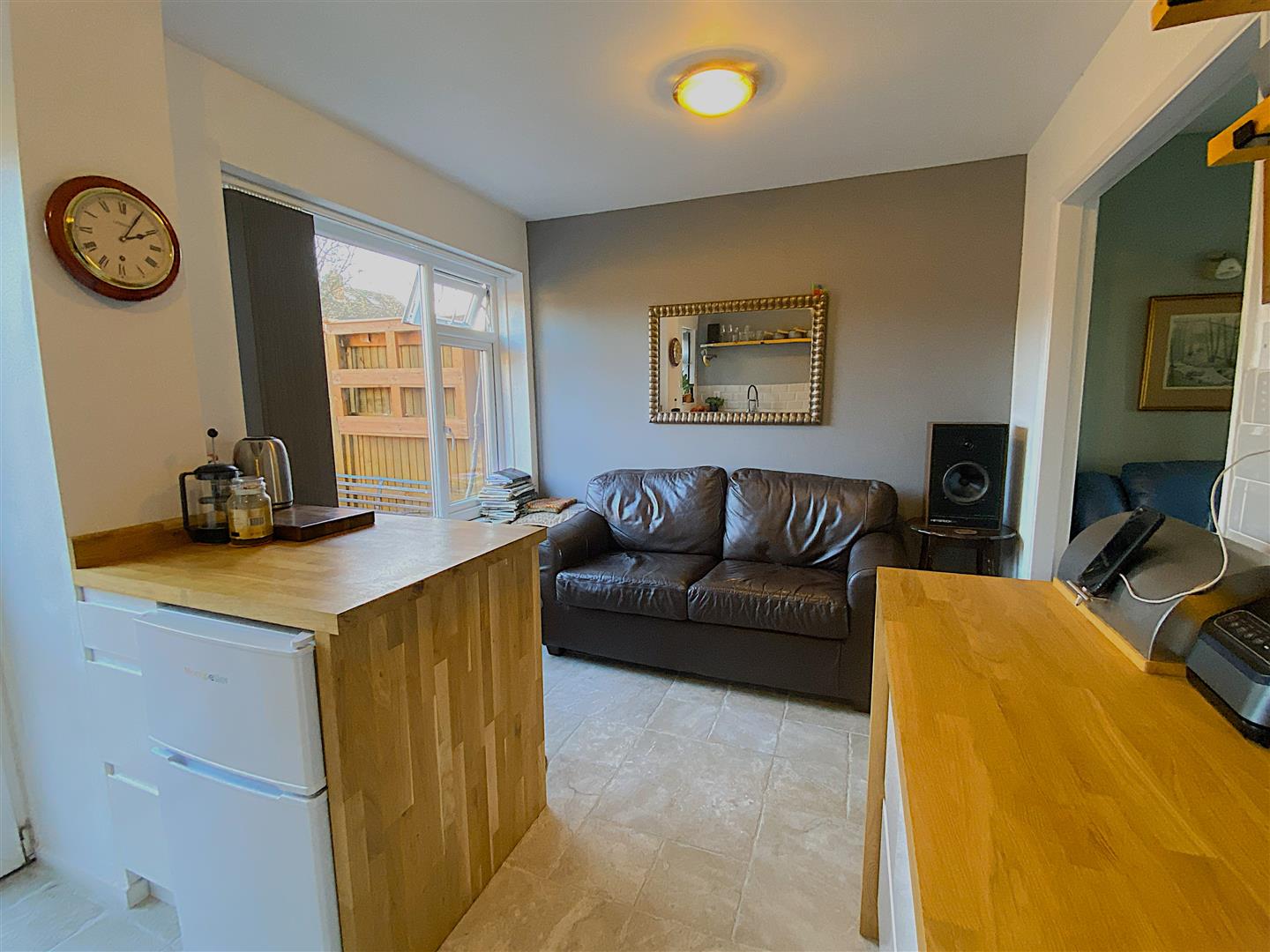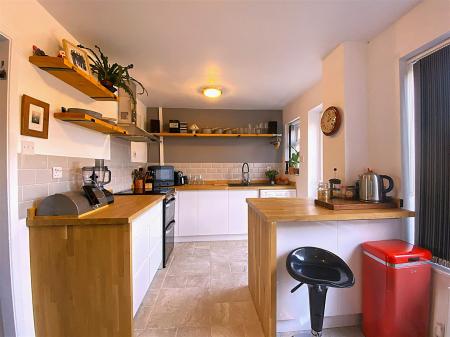 Kitchen-Diner - 2.61 x 4.26 (8'6" x 13'11") - Fitted with a range of floor mounted units with butchers block work tops and tiled splash backs, the kitchen also benefits from a free standing cooker with extractor, sink and drainer unit, plumbing for a washing machine, breakfast bar and tiled flooring.