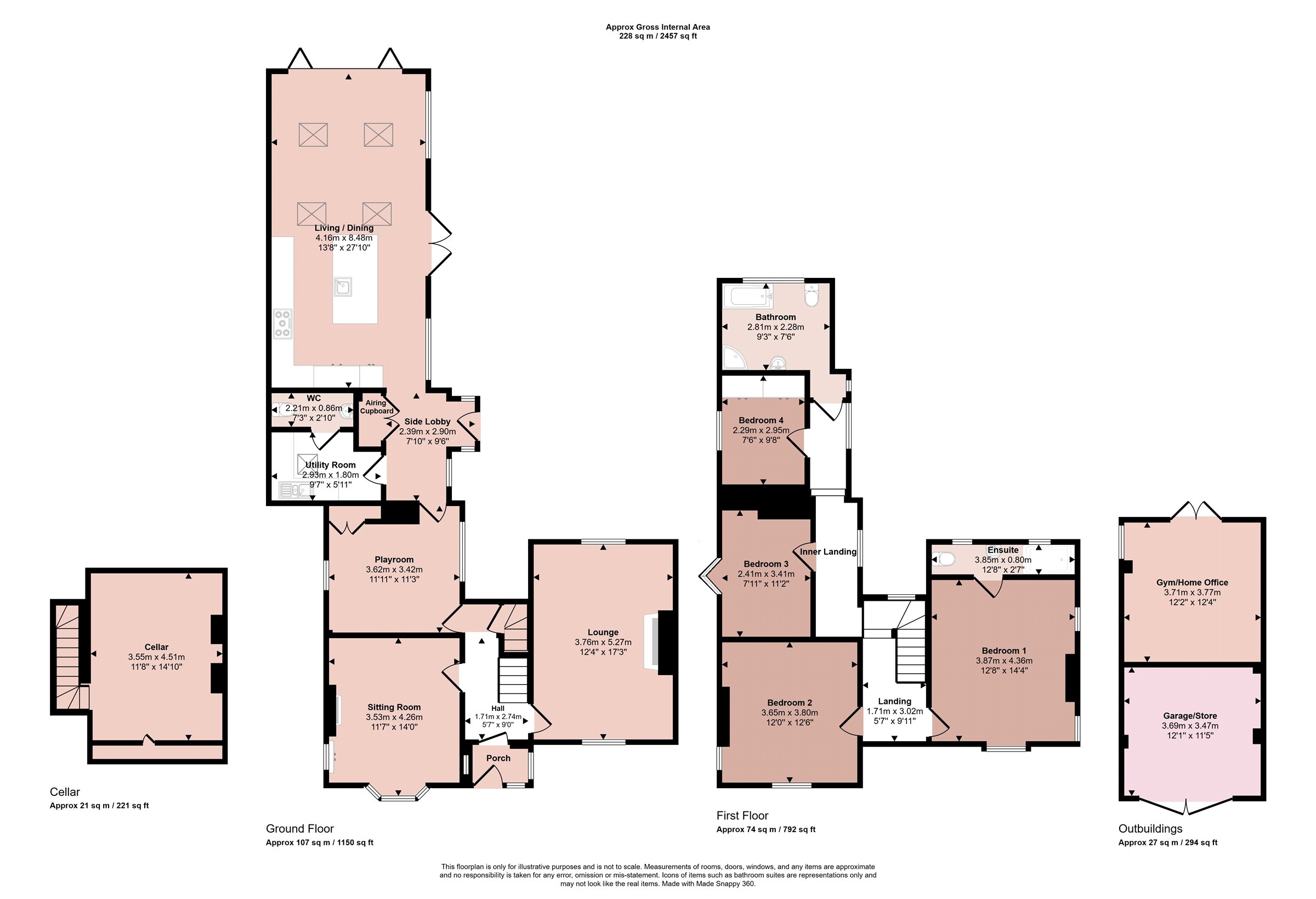 - Lounge, Sitting Room, Dining Room, Inner Lobby, Useful Cellar, Utility Room & Downstairs WC, Magnificent Living/Dining Kitchen