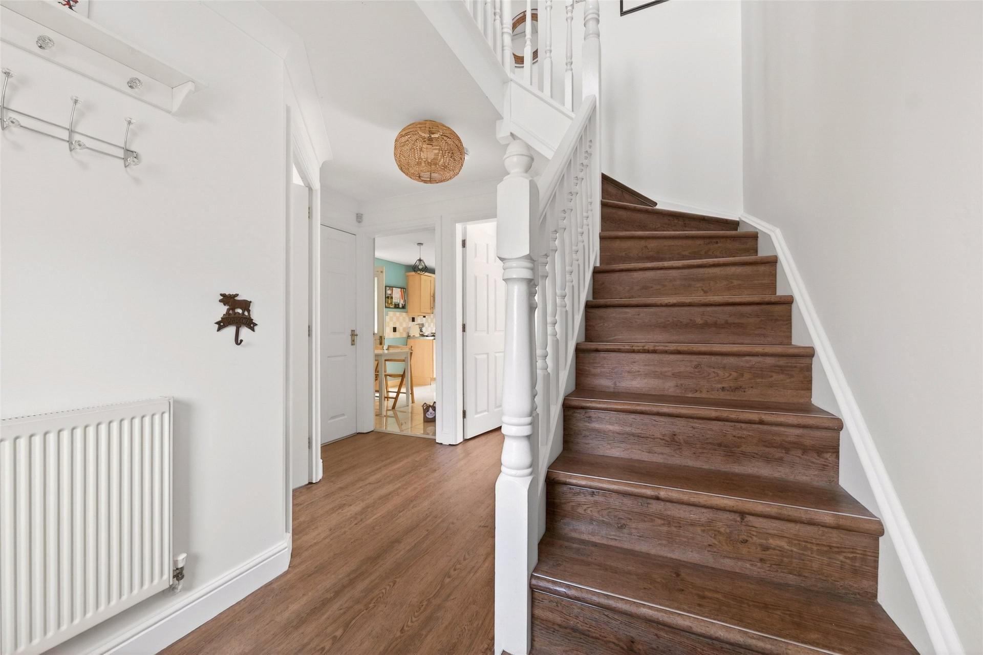 rooms, situated off the entrance hall as well as a breakfast kitchen and cloakroom. Upstairs a central galleried landing leads to four well proportioned bedrooms with a luxury refitted bathroom and en-suite shower room to the main bedroom. The property also has had a replacement gas central heating boiler and has high quality wood effect Karndean flooring fitted to the majority of the ground and first floor with the kitchen and bathrooms benefitting from underfloor heating. Outside the property has a larger than average plot with substantial lawned frontage, a driveway affording parking for three vehicles and detached single garage. There is a fully enclosed private rear garden. Early viewing is strongly recommended to fully appreciate the size and layout of the accommodation.