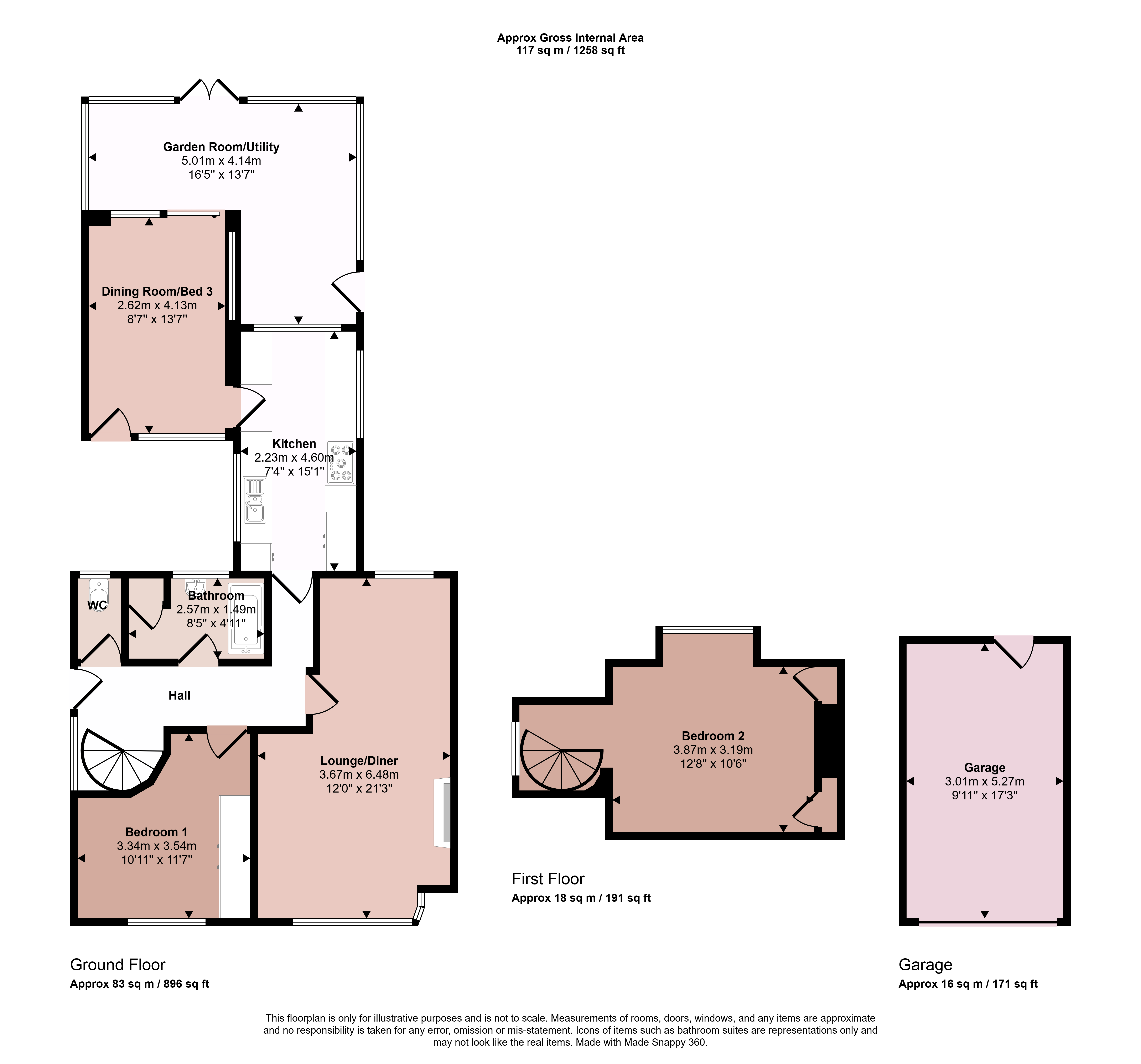 An individually styled two/three bedroomed detached chalet style residence located in this popular position near the centre of Melton Mowbray. Having no upward chain and having gas central heating and double glazing, the flexible internal accommodation comprises entrance into hallway with spiral staircase to the first floor, lounge, quality fitted kitchen, dining room/potential bedroom three, garden room/utility, separate WC, ground floor bedroom and bathroom and further bedroom to the first floor. Outside the driveway leads to the separate garage. The rear gardens offers sizeable proportions with ornamental walls, lawns and stocked perennial borders offering a high degree of general privacy.