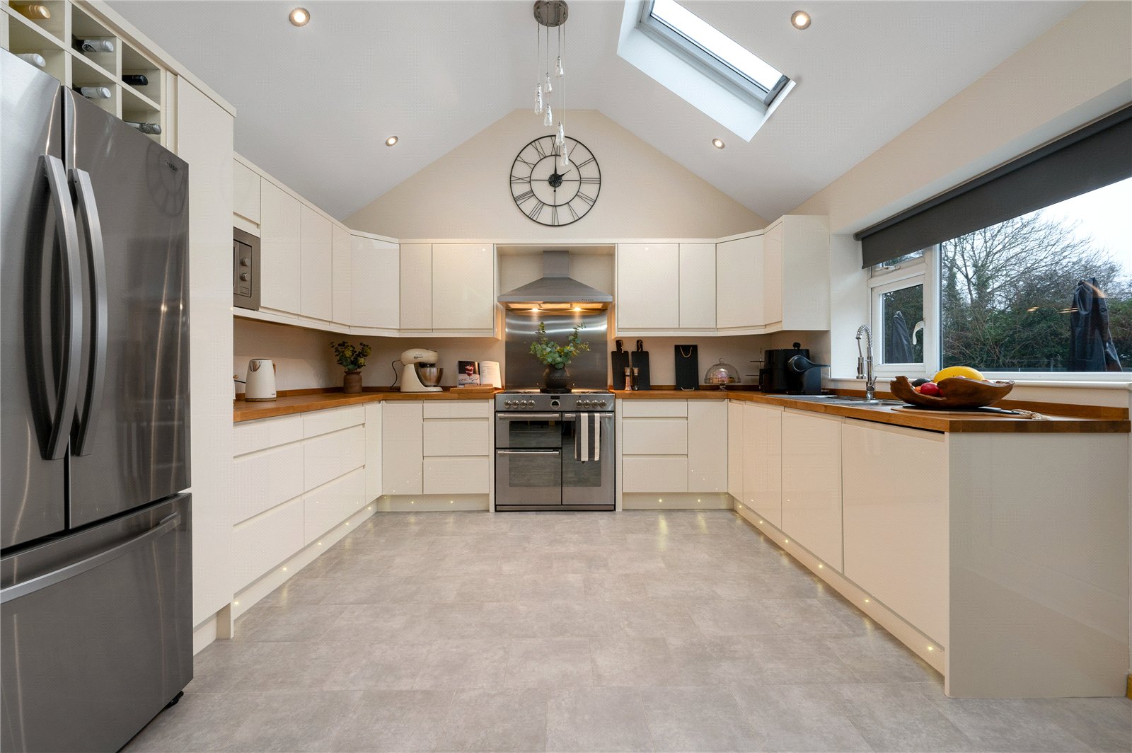 Located in the heart of Markfield in a prominent elevated position with far reaching panoramic views, this large home has been comprehensively refurbished and extended by the present owners and enjoys split-level accommodation offering huge versatility. The property is located on a large plot with wraparound gardens and a substantial gravelled driveway. The main home itself features a welcoming entrance hall, substantial lounge with media wall and an extended living/dining kitchen as well as a utility with a dog shower, cloaks/WC and home office/bedroom four. Upstairs there are two substantial bedrooms and a refitted bathroom and on the lower ground floor is a principal bedroom suite with a luxury refitted wet room, integrated wardrobes and a door leading to the outside with covered seating. Within the grounds is a substantial workshop which could be used for a variety of purposes being fully alarmed with power and lighting and air conditioning. The property offers stylish and ready to move into accommodation. Early viewing is recommended.