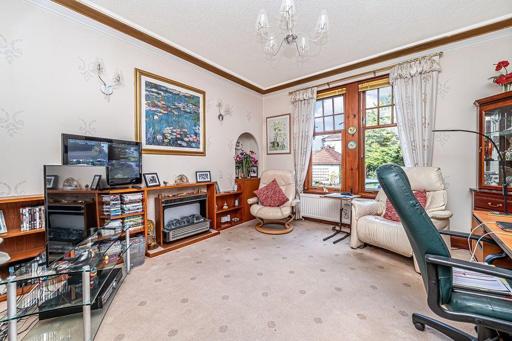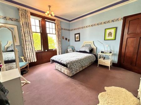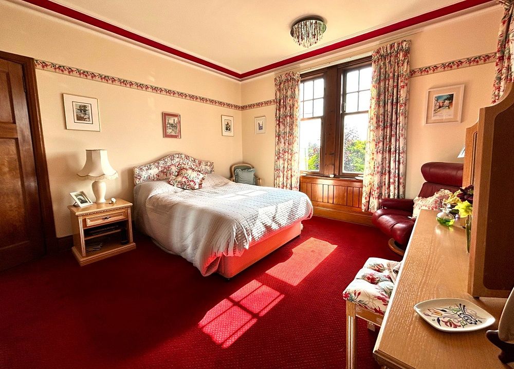 Upstairs, the current principal bedroom-used as a formal reception room-enjoys captivating views over the local golf course and the Firth of Forth. Three additional double bedrooms, a single bedroom (currently used as a dressing/storage room), and a family bathroom complete the upper level.