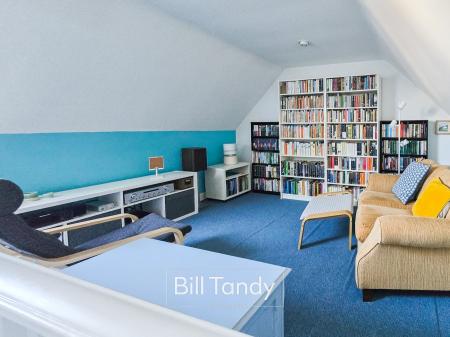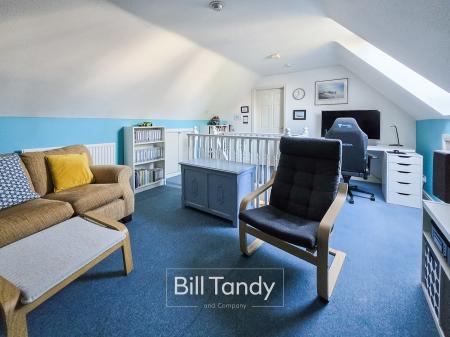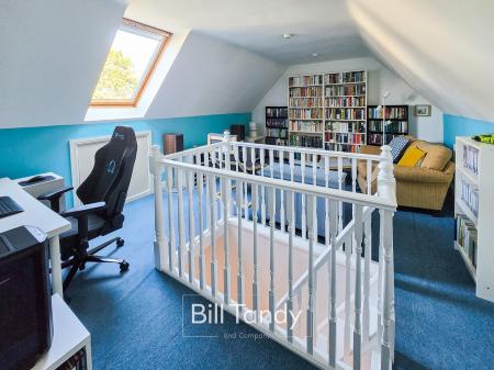 5.26m x 3.98m into reduced ceiling height (17' 3" x 13' 1" into reduced ceiling height) one of the distinct features of the property is this superb loft hobbies, accessed via a staircase from the first floor landing and having Velux skylight window with blind to rear, doors to useful eaves storage and downlighting. A further door leads to a useful store.
