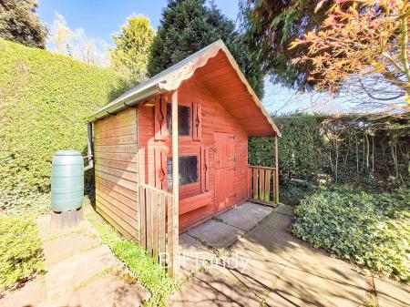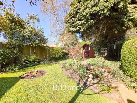 To the front of the property is a shared access leading to a generous block paved driveway providing parking and leading to the garage and front entrance door. A side gate gives access to the rear. Set to the rear is a paved patio, external tap, lighting, paved pathway leading to the rear of the garden having shaped lawn, flower bed borders, mature trees and shrubs and childrens' summerhouse.