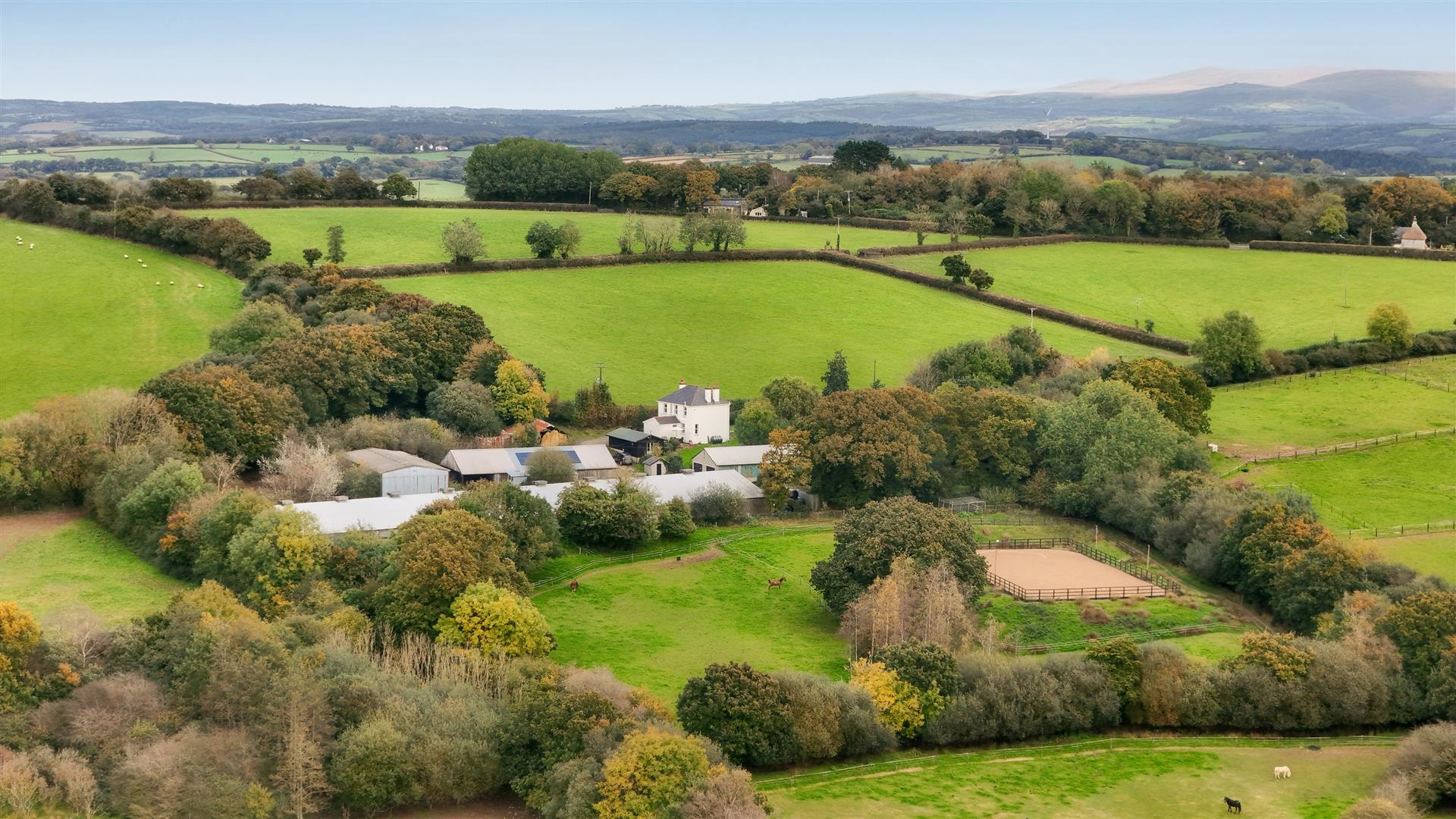 4 bedroom country residence set in 28 acres. Lawned gardens, yard with a range of useful outbuildings, stables, sand school and paddocks. In a rural setting, in the picturesque Devon countryside with far reaching views.