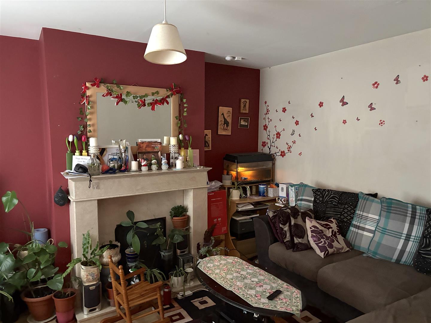 Lounge: - 4.3 x 3.4 (14'1" x 11'1") - Laminate flooring. Marble effect fireplace with marble effect hearth.