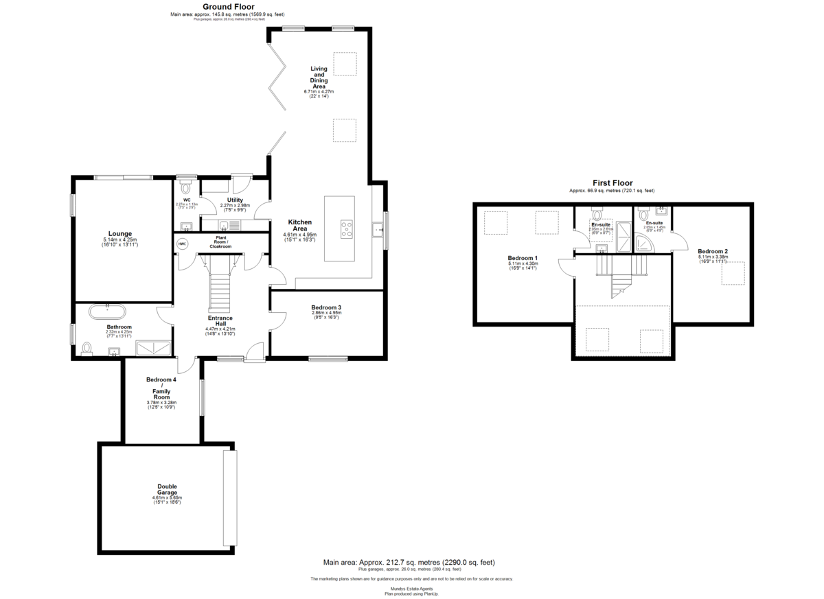• Two first floor double bedrooms, each with luxury en-suite