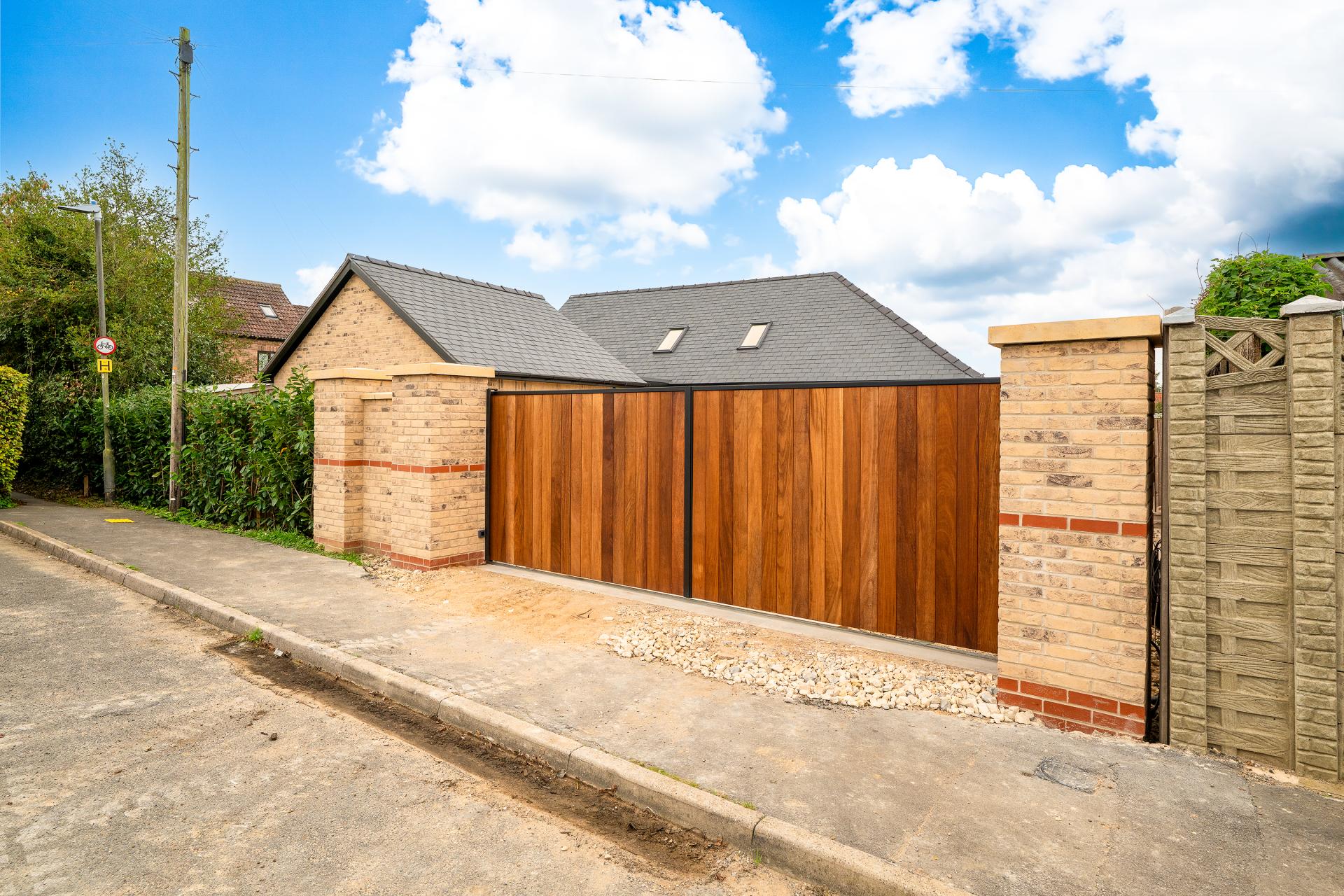 Externally, the property is approached via sliding Iroko hardwood electric gates, opening onto a large block paved driveway with access to an attached double garage. The enclosed rear garden includes a lawn, raised planters, and a generous paved patio, creating the perfect space for outdoor entertaining.