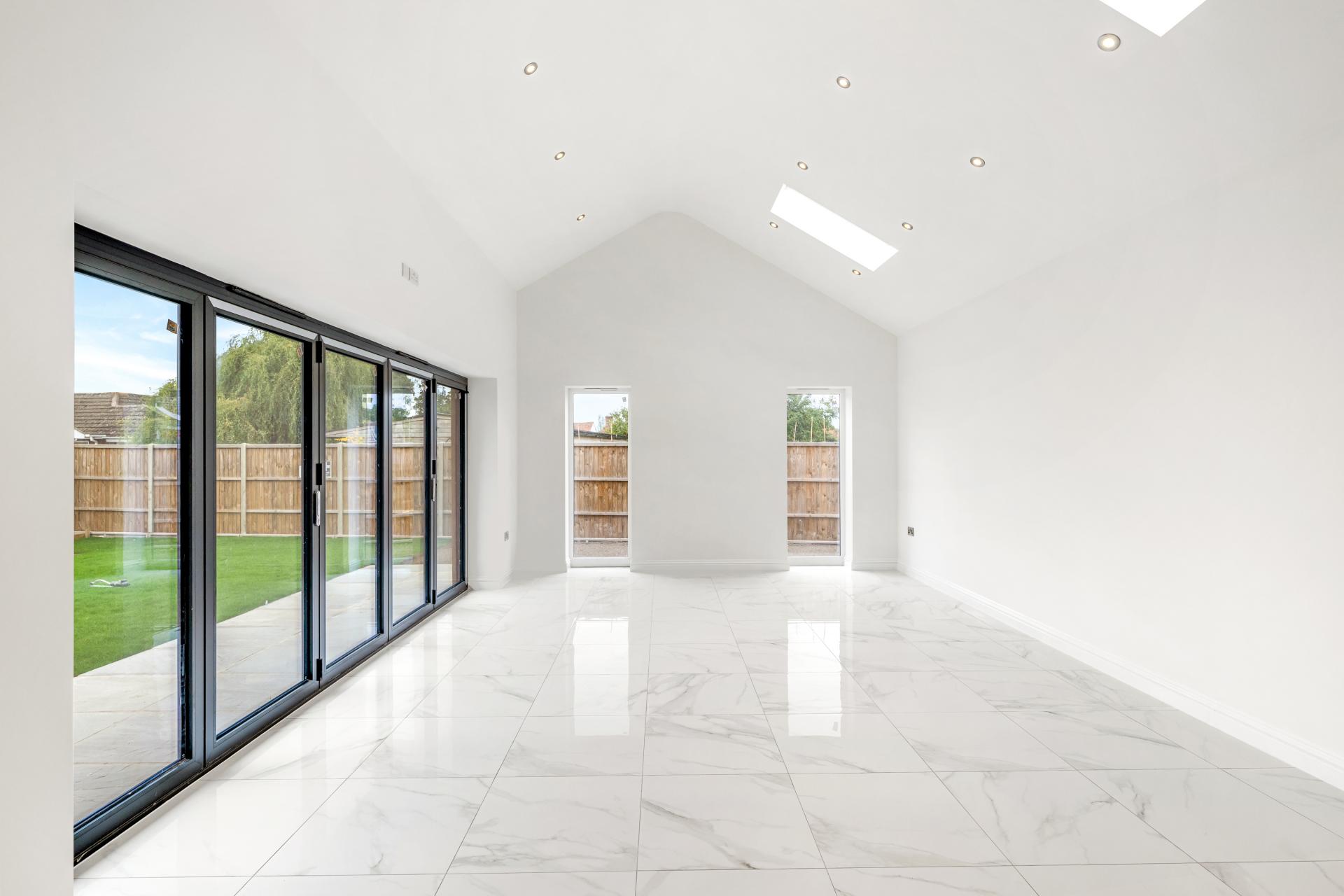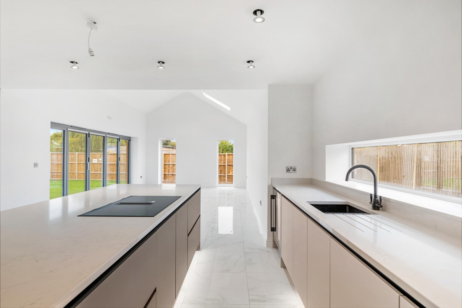 • Vaulted open plan kitchen/living/dining space with Quartz island and bi-fold doors