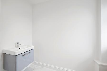 WC 7' 5" x 3' 9" (2.26m x 1.14m) With UPVC double glazed window, porcelain tiled flooring with underfloor heating, low level WC, wash hand basin with drawer below, extractor fan and spotlighting.