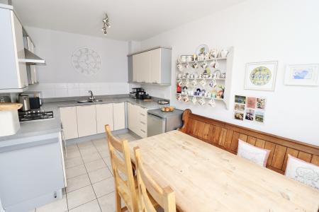 KITCHEN/DINER 15' 7" x 8' 4" (4.75m x 2.54m) With UPVC double glazed double doors to the Juliet Balcony, tiled flooring, range of wall and base units with work surfaces and tiled splashbacks, stainless steel sink drainer, integrated oven, four-ring gas hob with extractor over, space for fridge freezer and radiator.