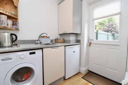 UTILITY ROOM 6' 10" x 5' 9" (2.08m x 1.75m) With external door, LVT flooring, base unit with work surface over, stainless steel sink drainer, plumbing and space for washing machine, space for tumble dryer or freezer, extractor fan and wall-mounted gas-fired central heating boiler.