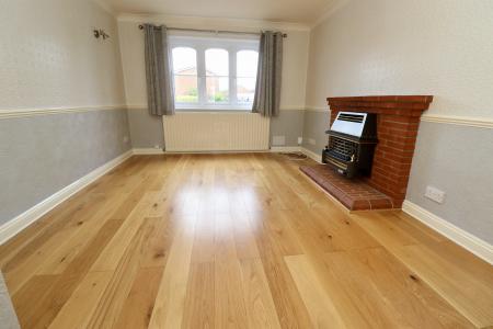 LOUNGE 15' 6" x 10' 7" (4.74m x 3.23m) With gas fire set within feature brick fireplace, laminate flooring, double glazed window to the front aspect and radiator.