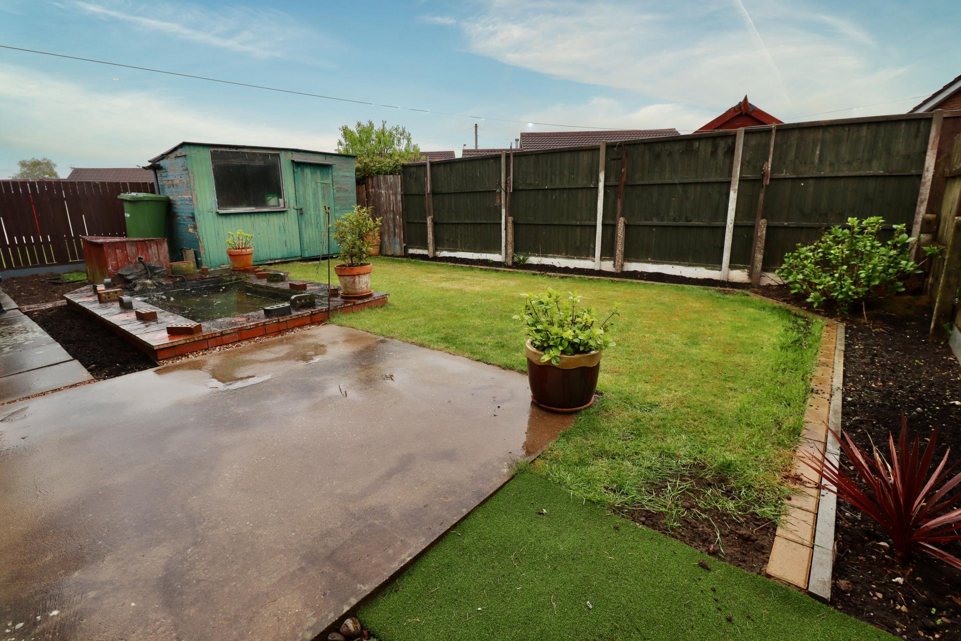 OUTSIDE To the front of the property there is a block paved driveway providing off street parking for multiple vehicles and access to the garage. The single garage has an up and over door to the front, light and power. To the rear there is an enclosed garden laid mainly to lawn with patio seating area, ornamental fish pond, garden shed and mature shrubs.