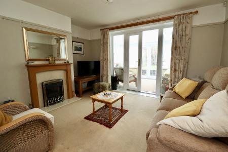 LOUNGE 13' 5" x 12' 3" (4.11m x 3.75m) With double glazed French doors to the conservatory, gas fire set within a decorative fireplace, wall lights and radiator.