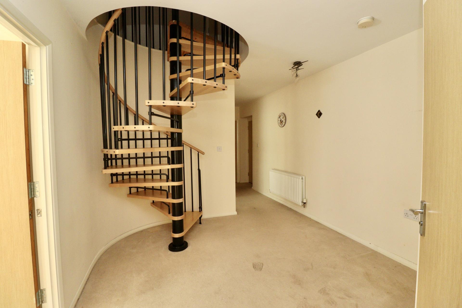 SPIRAL STAIRCASE TO THE SECOND FLOOR LANDING With doors to master bedroom and airing cupboard housing the hot water tank.