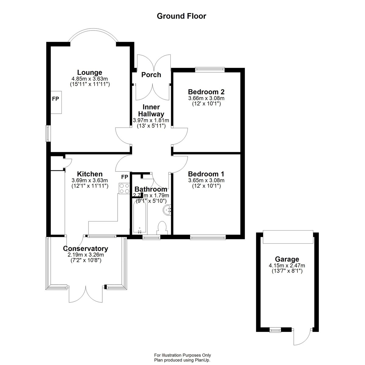LOUNGE 15' 10" x 11' 10" (4.85m x 3.63m) With walk-in UPVC bay window to the front aspect, window to the side aspect, gas fire with marble hearth and wooden surround and radiators.
