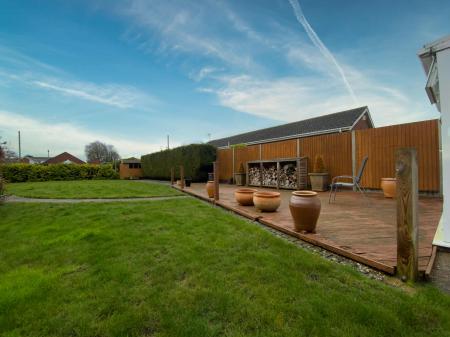 OUTSIDE To the front of the property there is a lawned garden with flowerbeds and a newly built wall. To the side of the property there is a gravelled driveway providing ample off road parking and giving access to the garage. To the rear of the property there is a decked seating area, lawned garden, paved seating area, garden shed and a feature block paved snake path to the feature garden area with decorative gravelled beds.