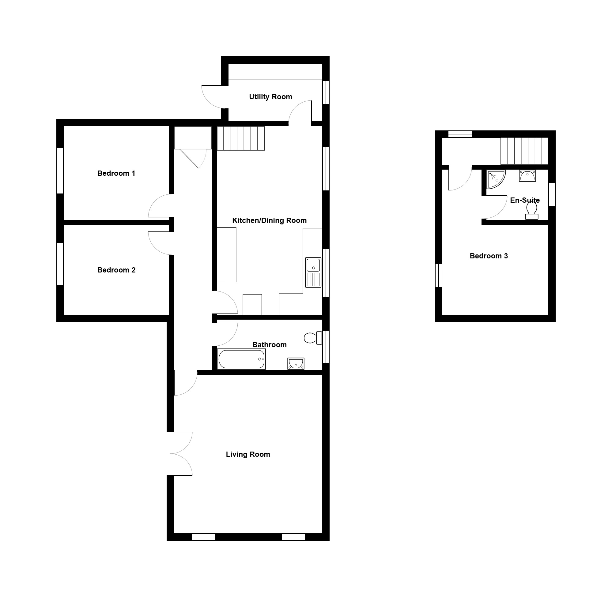 This well planned accommodation comprising of an entrance hallway, living room, kitchen/diner, utility, bathroom and 2 bedrooms on the ground floor, whilst the first floor contains the final bedroom and the en-suite.