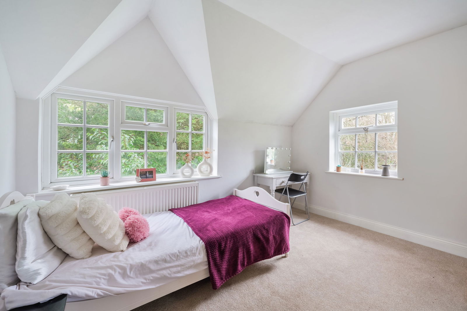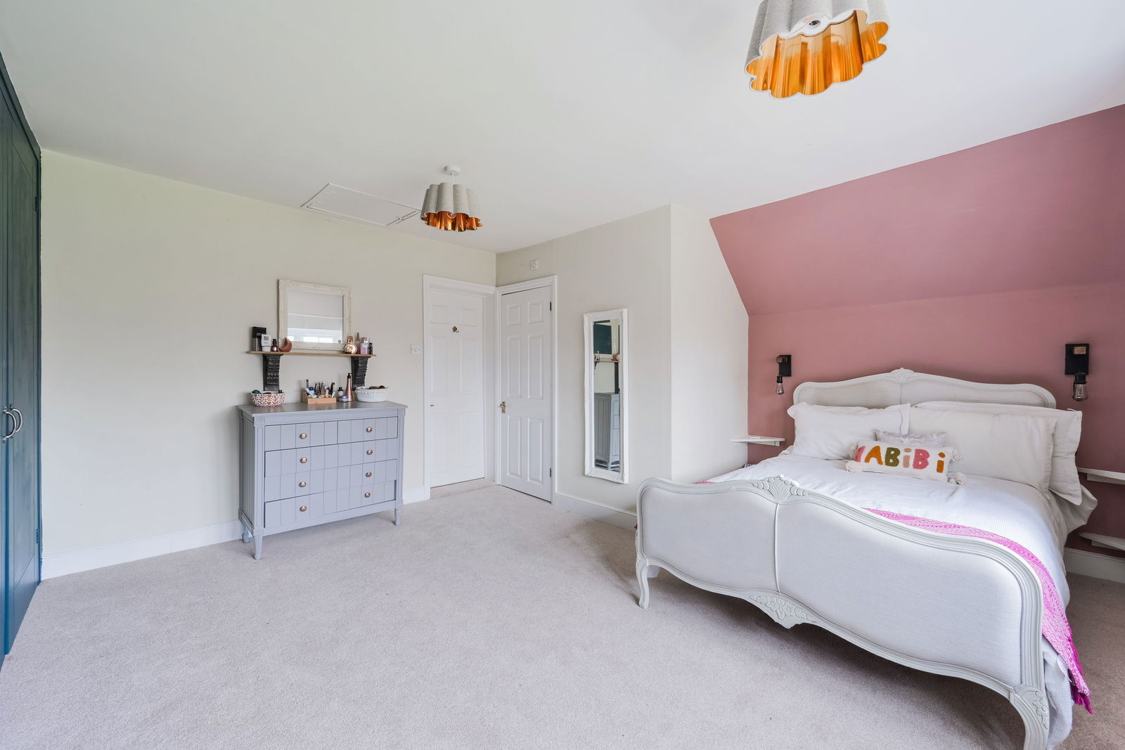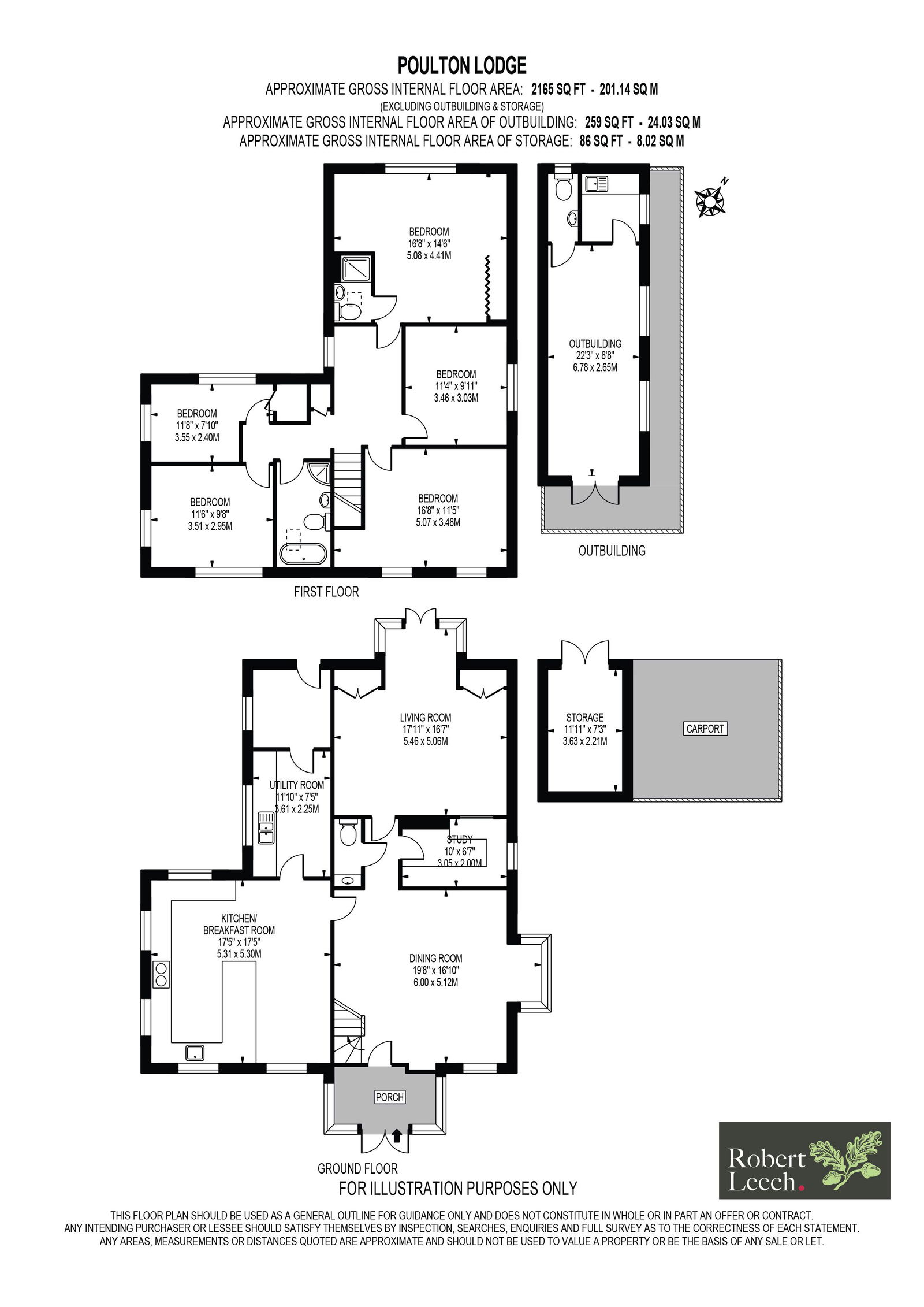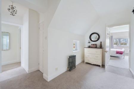 To the first floor, a central landing with airing cupboard leads to five well-proportioned double bedrooms. The principal bedroom benefits from floor-to-ceiling fitted wardrobes and an en-suite shower room. There are four further double bedrooms, two enjoying double-aspect views and all are served by the family bathroom.