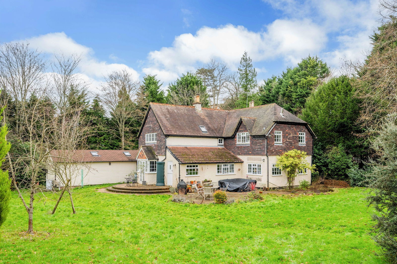 Set within a highly sought-after and rarely available semi-rural position on the edge of Dormansland village, this substantial and characterful detached family home offers generous and versatile accommodation, far-reaching views and beautifully established grounds extending to approximately 1.3 acres.