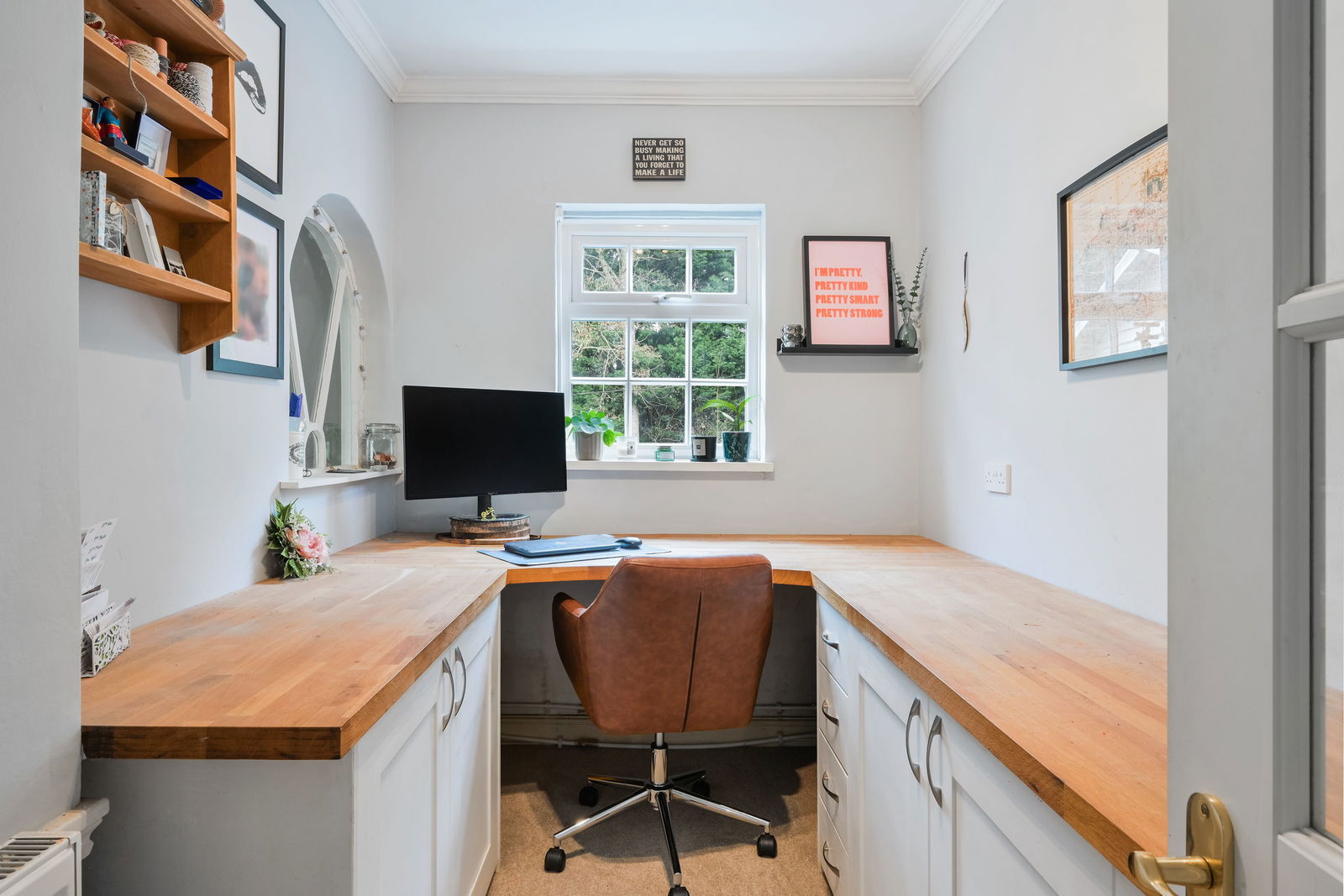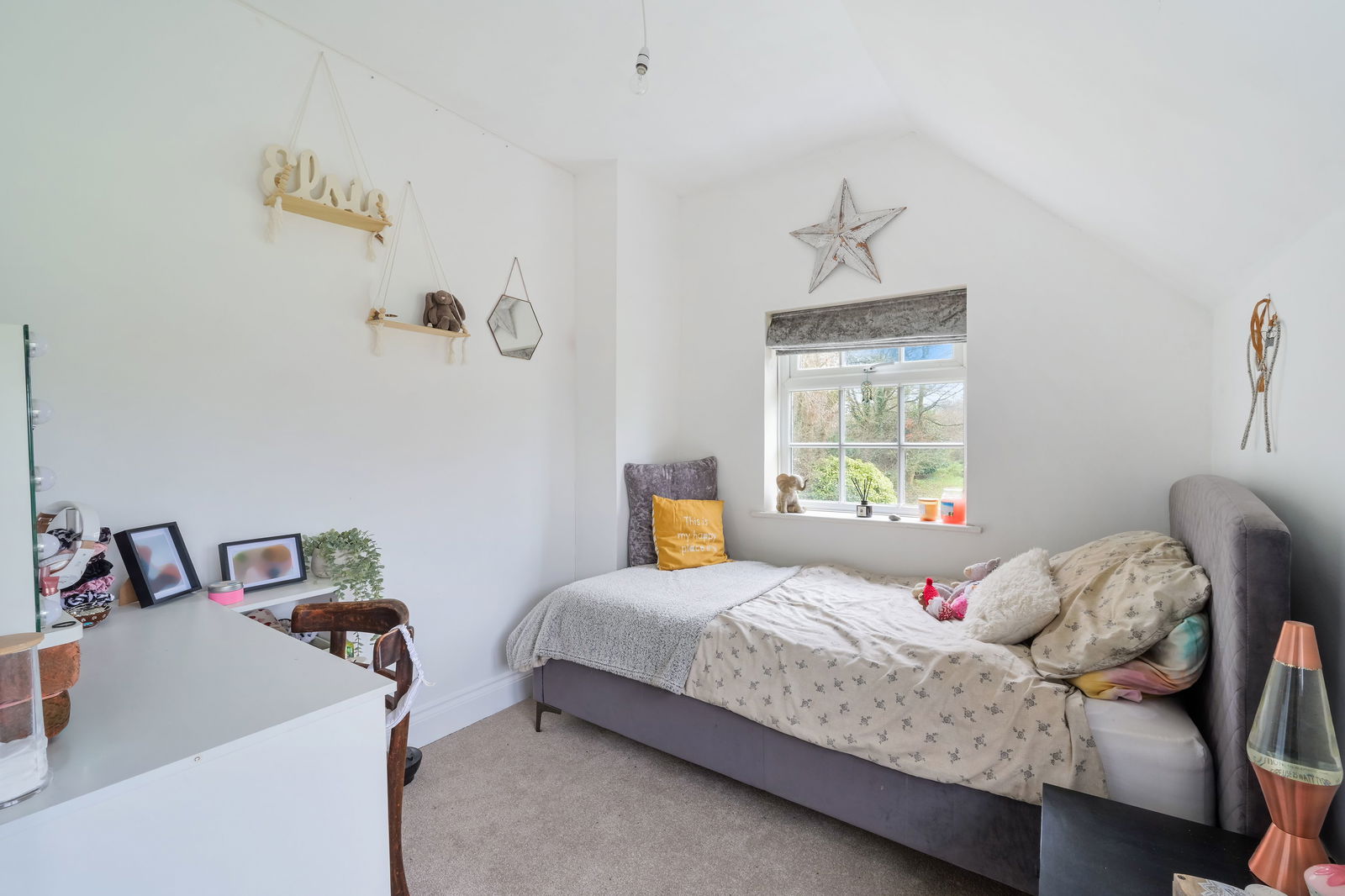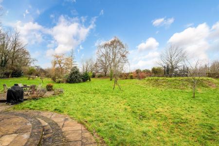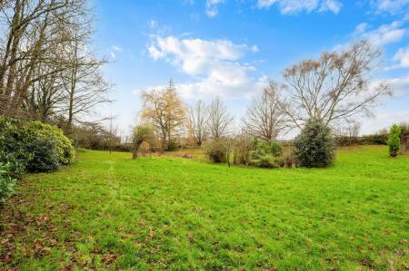 Outside, the gardens are a particular highlight. A large terrace runs along the rear of the house, ideal for outdoor dining and entertaining, with the lawned gardens stretching away to overlook open fields beyond. Within the grounds is a productive vegetable garden, a pond and a wealth of mature planting. The property also benefits from a separate insulated lodge with power and lighting, offering an excellent opportunity for a home office, studio or hobby space.