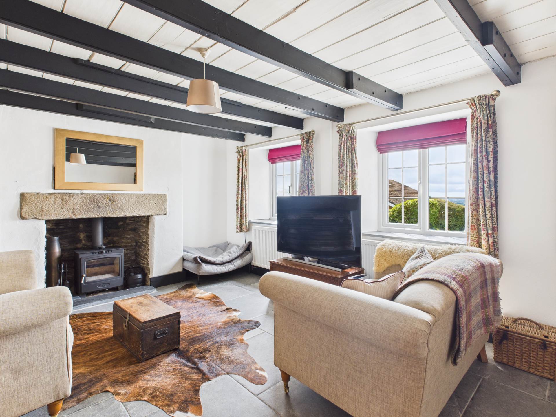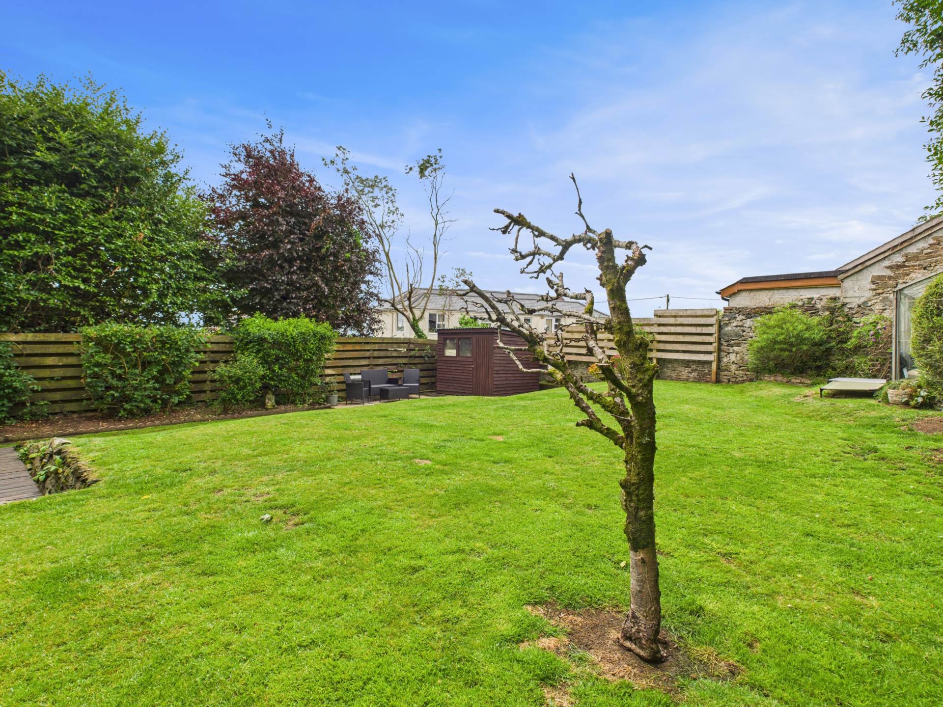This charming cottage has a driveway and parking for approximately 2 vehicles. There is exposed Cornish walling and hedging, and a gravelled finished areas. A gateway gives access to the side which leads to a covered storage section. Steps lead up to a further gravelled pathway which leads to the impressive main garden with an enclosing gate, Cornish walling and natural hedging. This is a peaceful setting with stepping stones and a decked area with corner seating. The garden is mainly laid to lawn with attractive flower and shrub beds and borders. It is private and has a further patio section ideal for Al fresco dining and is an ideal choice for all the family/friends to relax in.There is a Greenhouse and a shed and the garden enjoys countryside views.