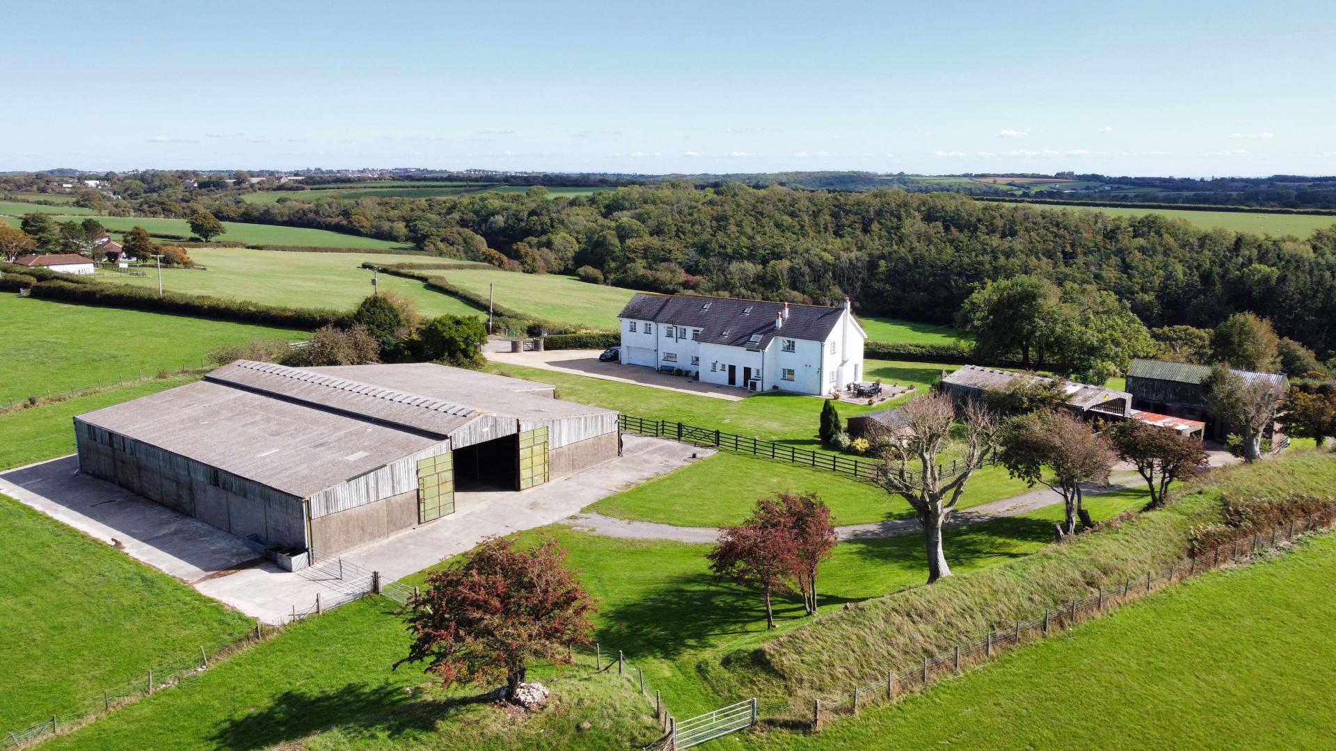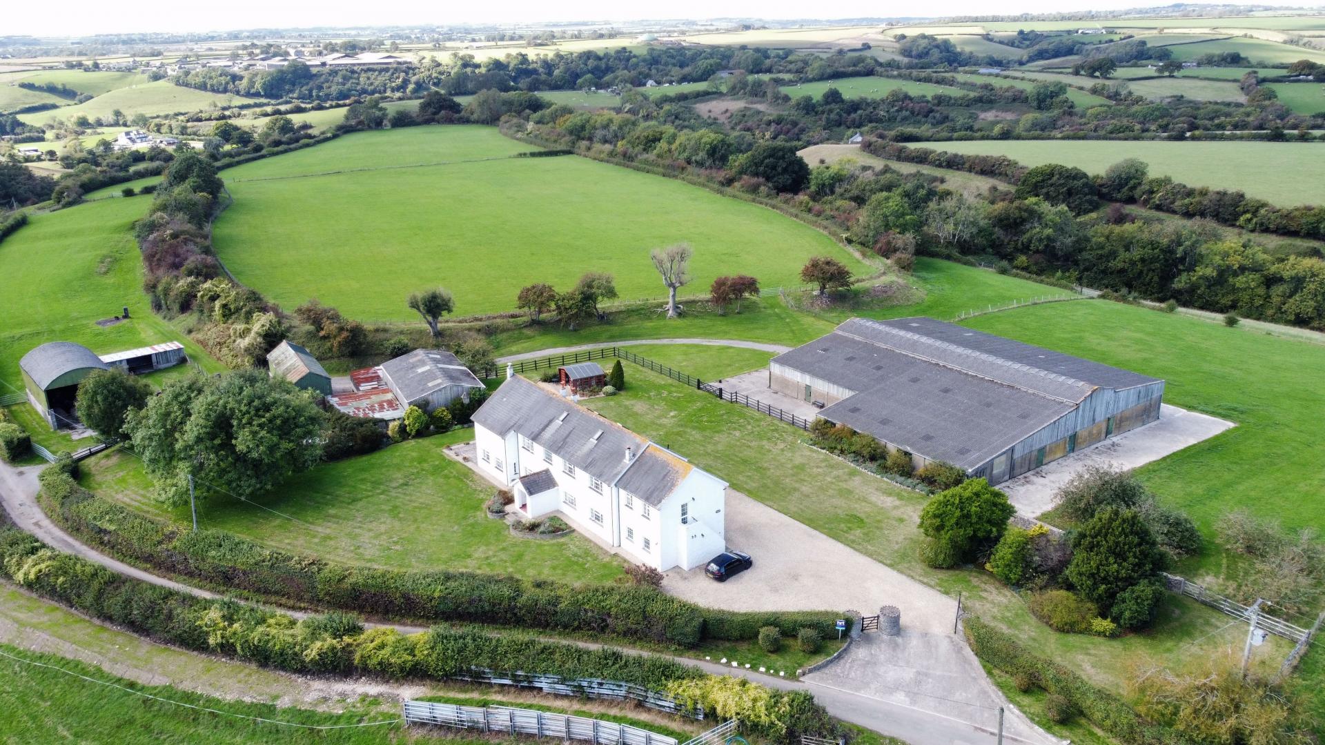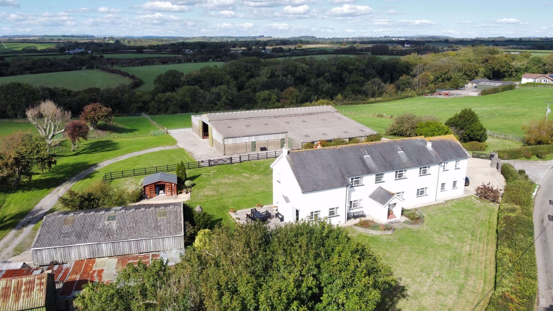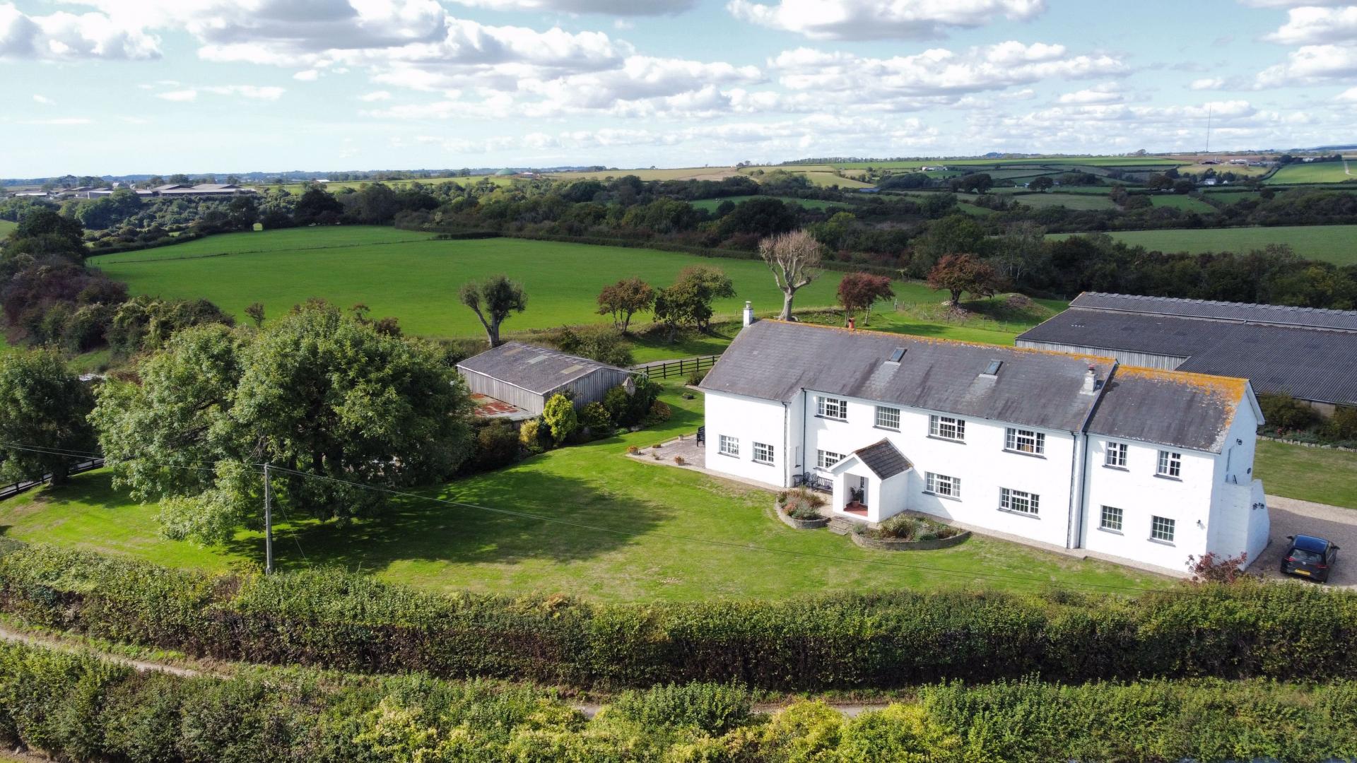 - Modern detached farmhouse with land and buildings.