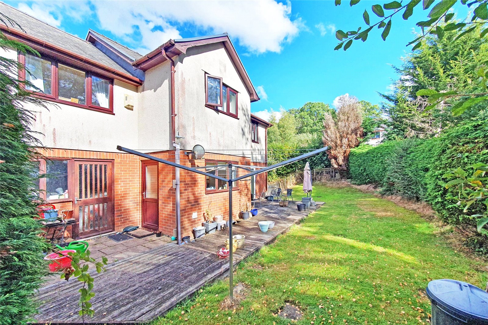 A well proportioned, spacious detached house built in the early 1990s from traditional brick and block walls, under a slate roof. It has been upgraded with PVC double-glazing, has mains gas central heating and briefly provides: - Porch, Entrance Hall, Cloakroom, Lounge, Dining Room, Kitchen, Landing, five Bedrooms (one with en-suite Shower Room), and a family Bathroom. In addition there is a Garage, parking bay for 4 cars and gently sloping mature lawned gardens with excellent privacy and a large South-facing deck along the rear of the house. Council Tax - Band E EPC - D ( 59 )
